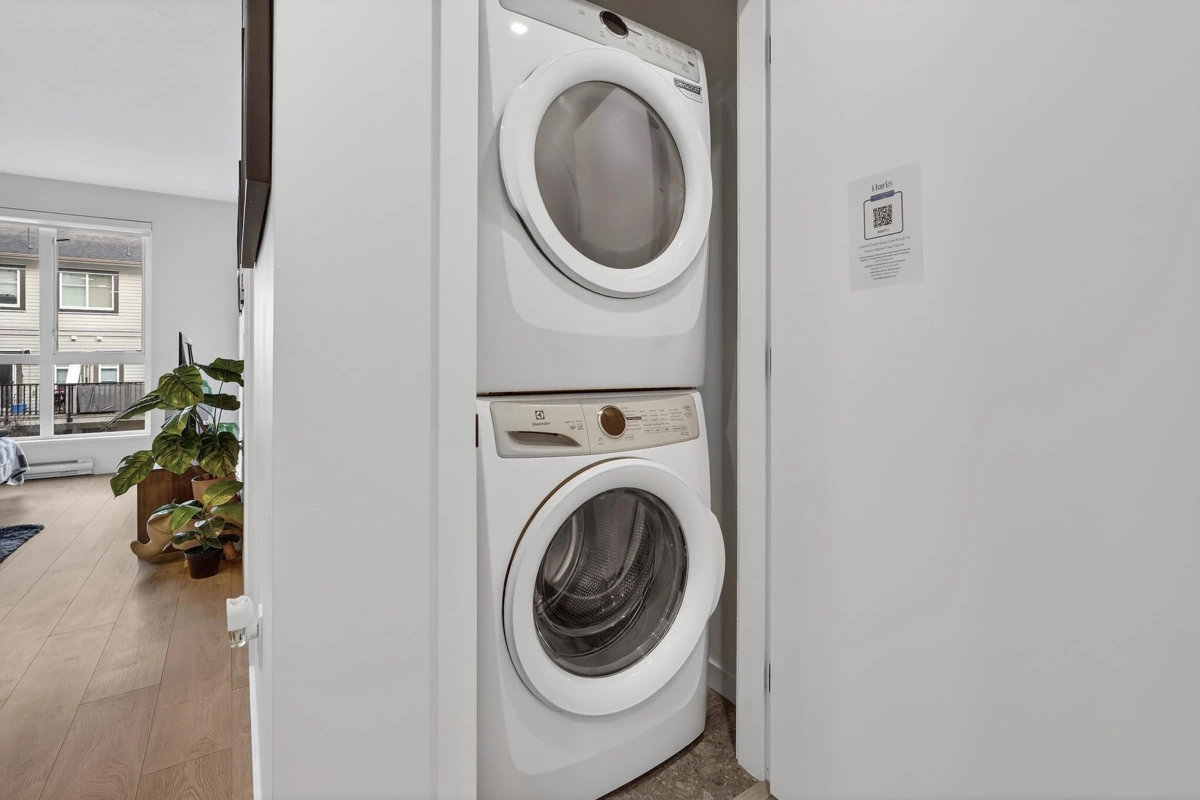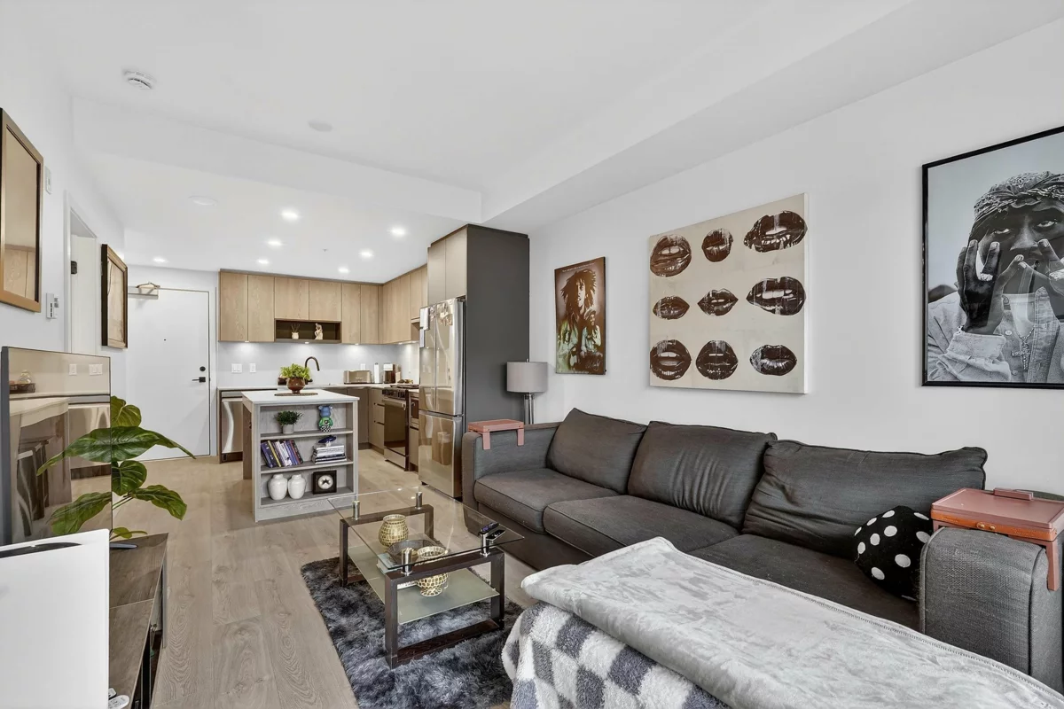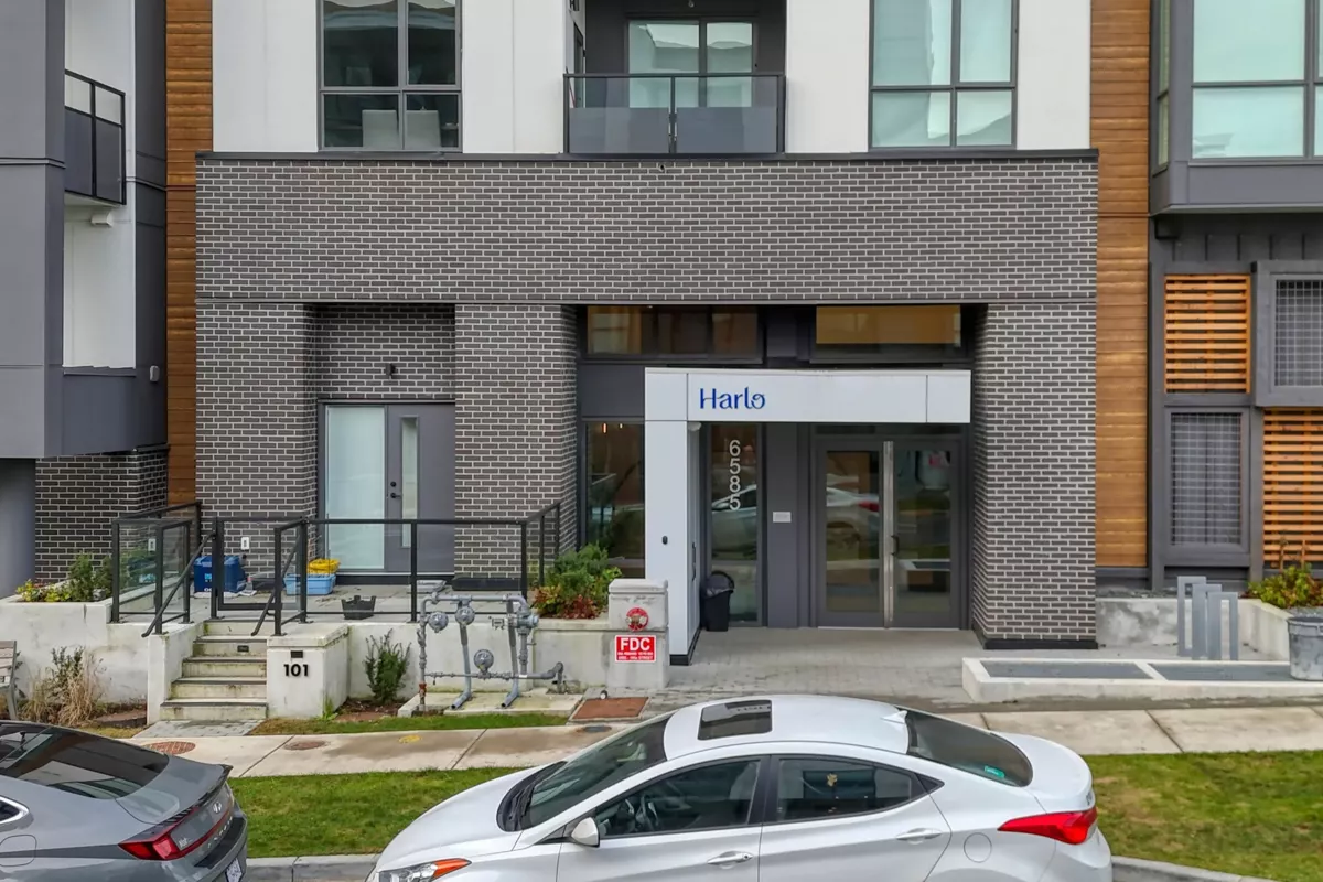 Harlo offers modern living in a prime, walkable location with parks, shopping, and everyday amenities just steps away. This like-new home features a contemporary design, high ceilings, large windows, and a bright open layout that flows to a spacious outdoor patio. The kitchen is equipped with high-end stainless steel appliances, a gas range, w/quartz countertops. Inside you’ll find in-suite laundry, a generous bedroom, and a beautifully finished 4-piece bathroom. Residents enjoy premium amenities including a rooftop terrace with mountain views, gym, Peloton room, co-working space, children’s play area, multiple lounges and a golf simulator. Includes 1 parking stall and 1 storage locker. A future SkyTrain station nearby makes this a smart investment and an easy commute.
