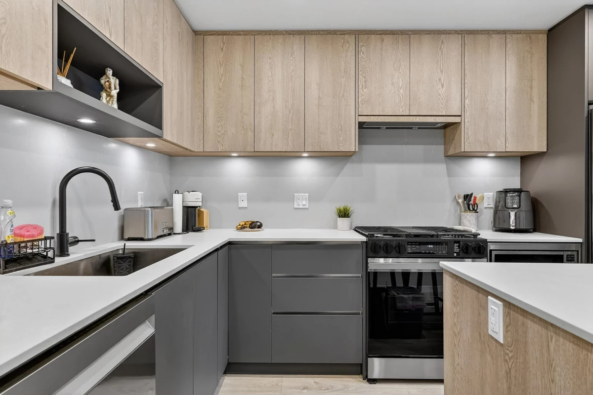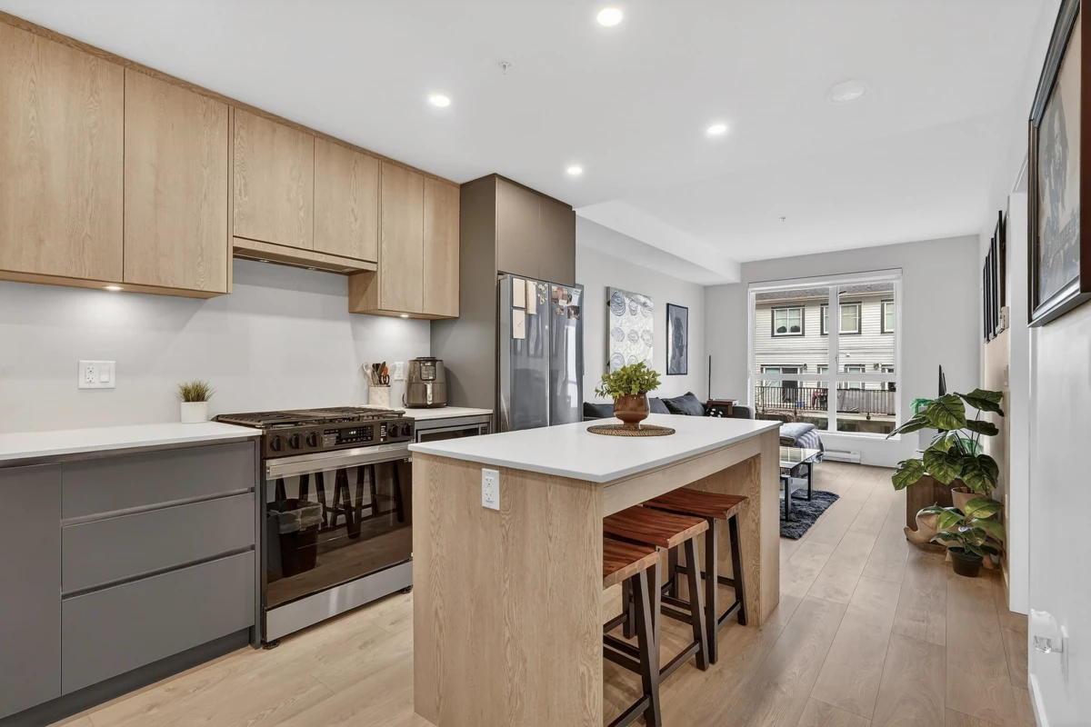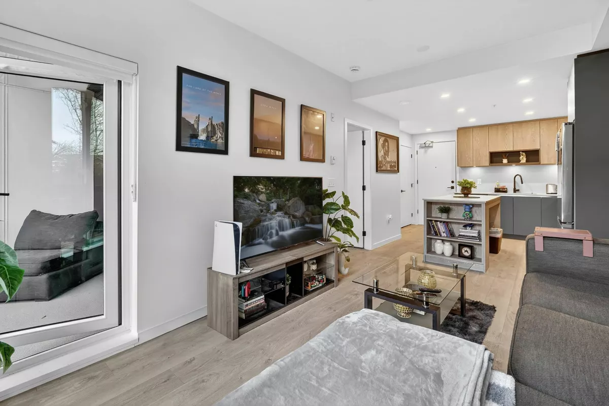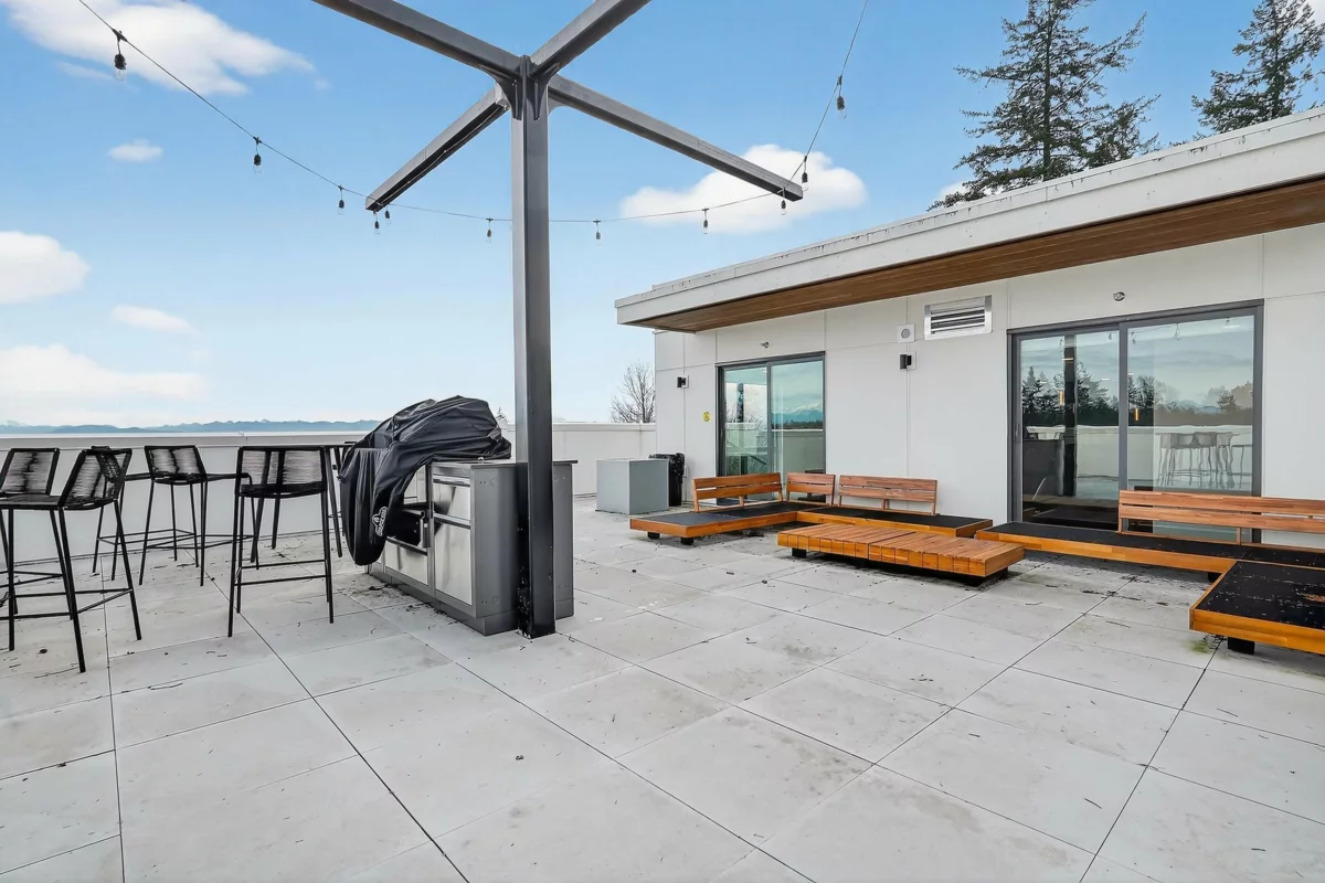 Harlo offers modern living in a prime, walkable location with parks, shopping, and everyday amenities just steps away. This like-new home features a contemporary design, high ceilings, large windows, and a bright open layout that flows to a spacious outdoor patio. The kitchen is equipped with high-end stainless steel appliances, a gas range, w/quartz countertops. Inside you’ll find in-suite laundry, a generous bedroom, and a beautifully finished 4-piece bathroom. Residents enjoy premium amenities including a rooftop terrace with mountain views, gym, Peloton room, co-working space, children’s play area, multiple lounges and a golf simulator. Includes 1 parking stall and 1 storage locker. A future SkyTrain station nearby makes this a smart investment and an easy commute.