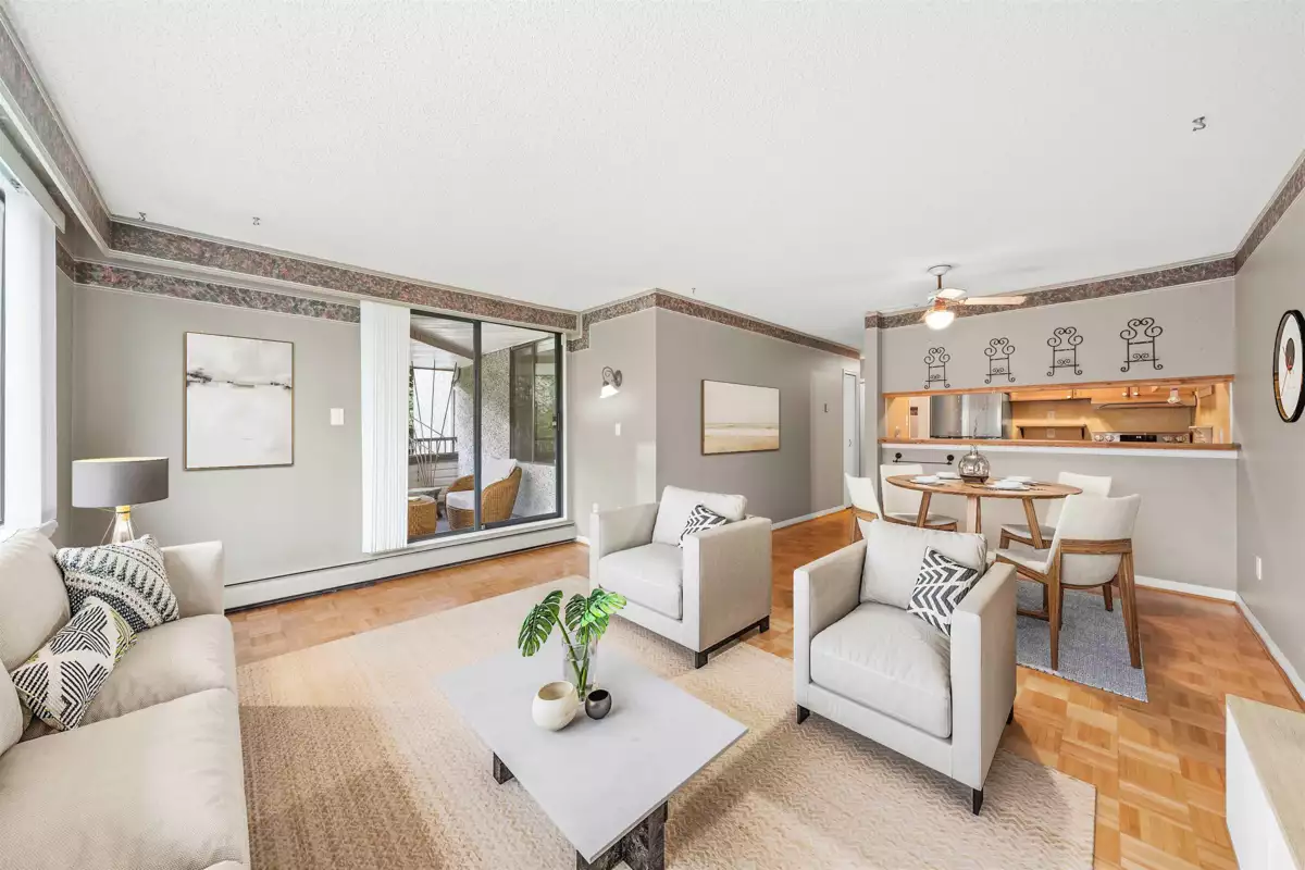 Welcome to The Timbers! This spacious 2 bedroom, 1 bathroom home offers a functional layout with generous living and dining areas. Recent upgrades include a brand new LG fridge, LG stove, and hood fan. Perfectly situated just minutes from Lougheed SkyTrain Station, Lougheed Mall, the upcoming Cameron Community Centre, parks, and schools. Everything you need is right at your doorstep. An excellent opportunity for first-time buyers or investors in a well-maintained building.