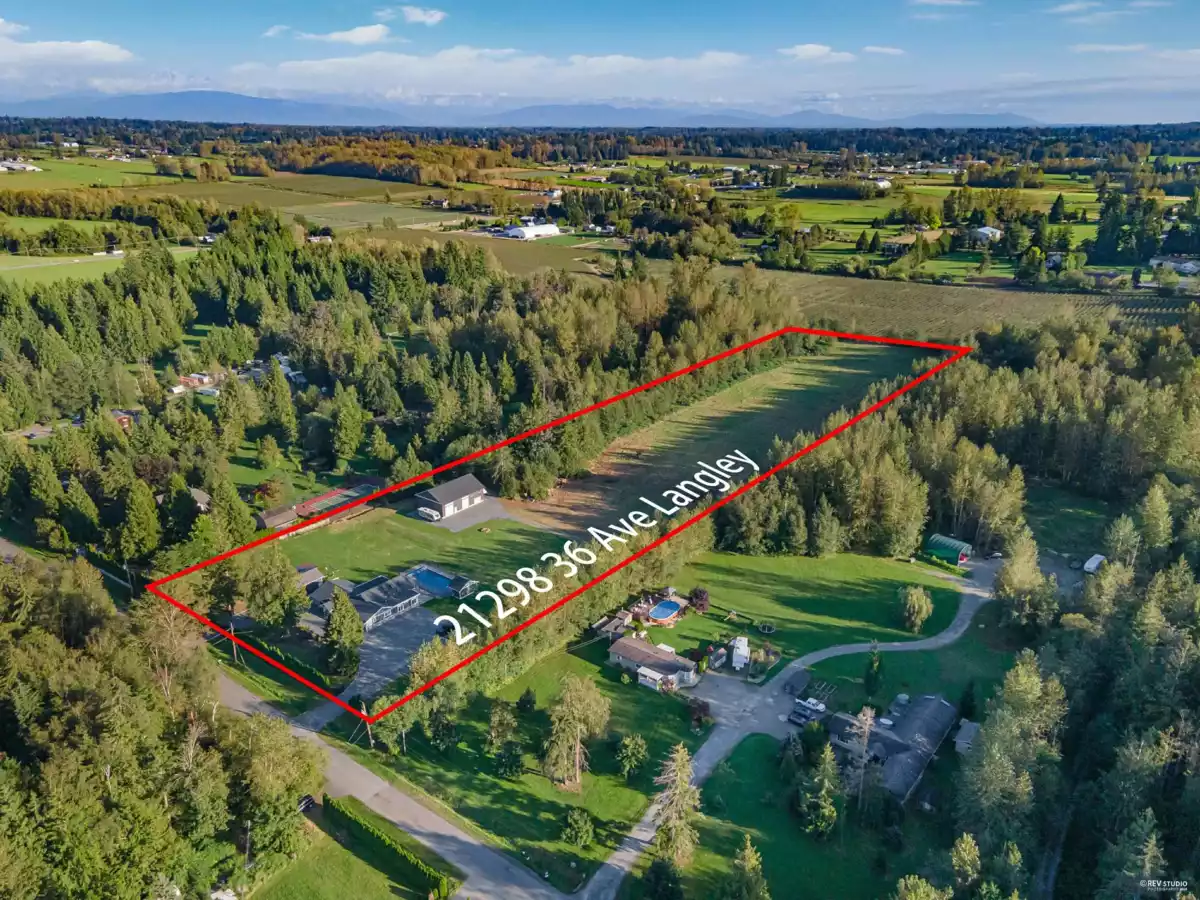 Brookswood 10.22 acre property is situated on a quiet dead-end street. Great location, close to Langley City. Flat useable acreage, Full cleared. Fabulous rancher is fully renovated! Beautiful country kitchen features new maple cabinets, island, pullouts & all newer appliances. Spacious functional home with 4 entries. Large patio onto South exposed yard. Nice street appeal with circular driveway. Has built-in barbeque & gorgeous pool with pool house. Detached workshop attached with 2 bedroom suite. Potential for subdivision into TWO PARCELS (do due diligence) with ALC and Municipal Council approval. Current RU-1 (ALR) zoning permits a home based business, daycare, commercial greenhouses, agricultural usage.Price reduced 310K due to personal reason. Motivated seller, Welcome any offers.