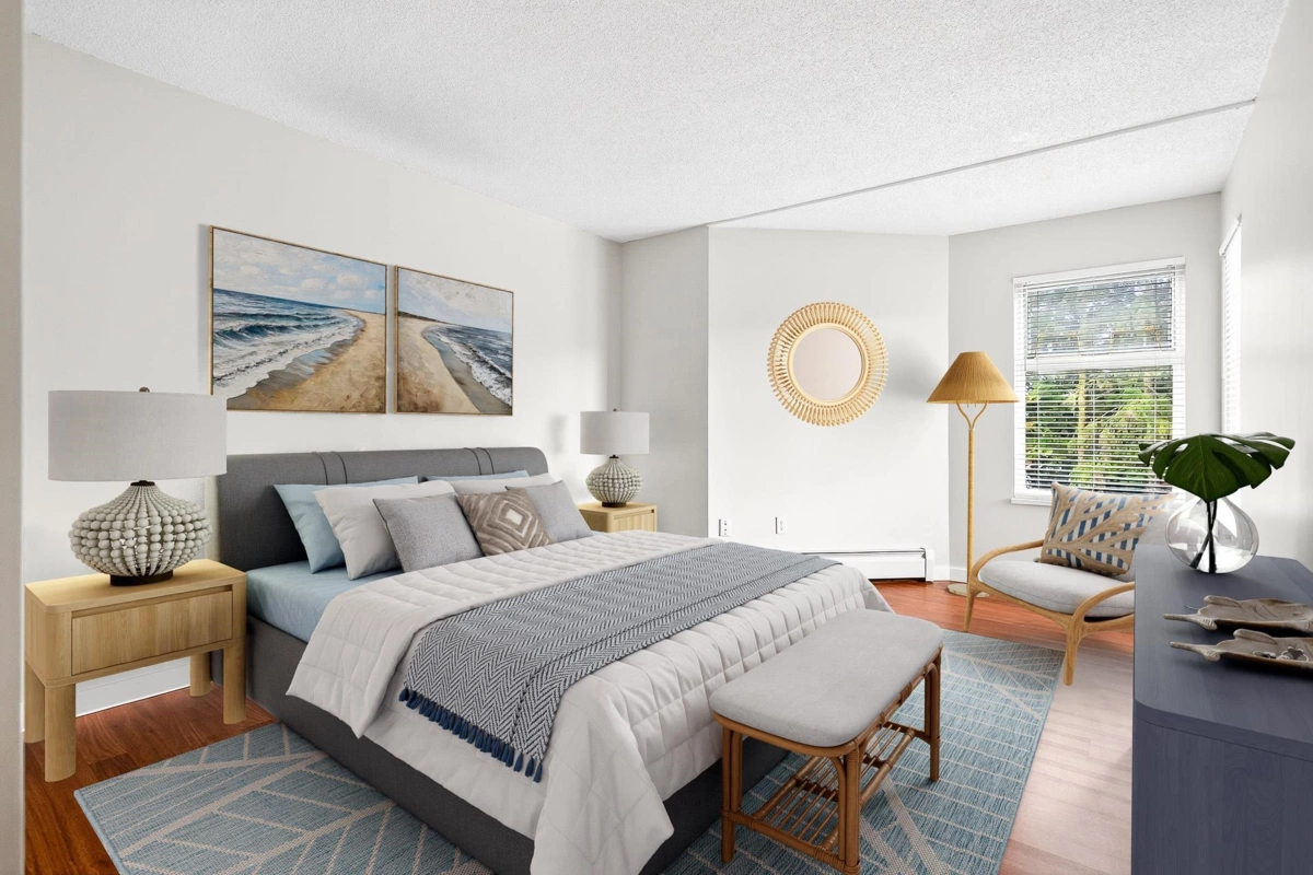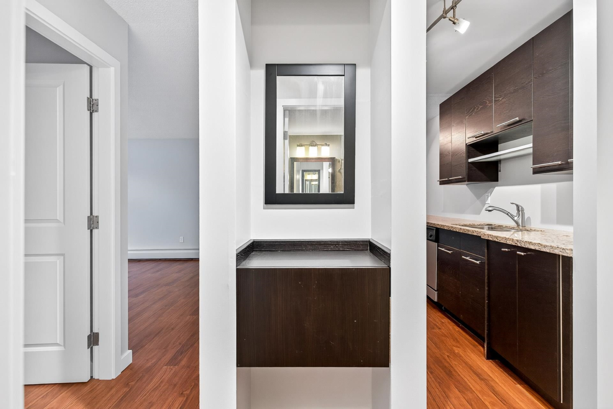 INVESTORS and FIRST TIME BUYERS alert!! One of the best values in South Surrey. This tastefully renovated 1 bedroom 1 bathroom condo just minutes from Semiahmoo mall is the one you have been waiting for. 670 sq/ft with a huge primary bedroom, bright living room and a galley kitchen with modern dark kitchen cabinets, Stainless steel appliances and granite countertops. There is even a large in-suite storage room as well as a storage locker, 1 parking space and an outdoor pool to enjoy in the summer months. This central location is an easy walking distance to great shopping, dining and transit too. (Some pictures are digitally staged)