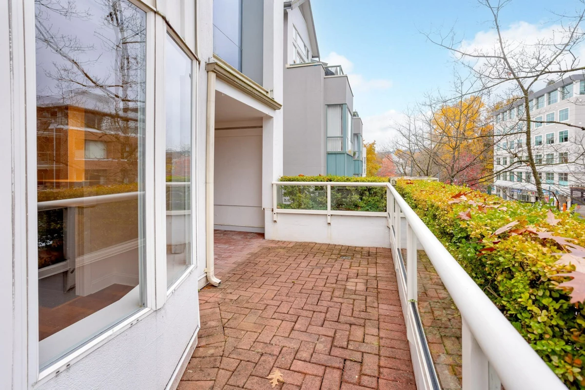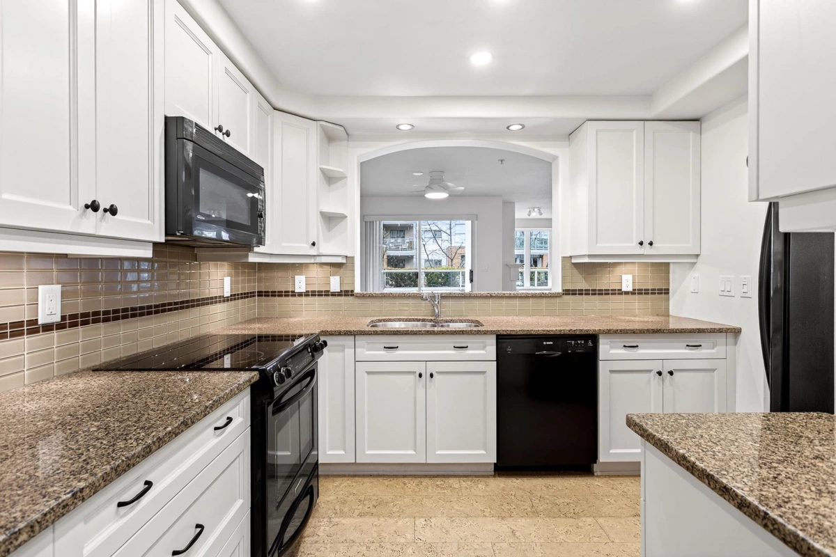 Bright 2-bedroom, 2-bath home in the heart of Newport Village offering 1,100+ sq. ft. of well-planned living. Spacious living room with gas fireplace and bay window. Renovated kitchen with white cabinets, granite counters, cork floors, plus pantry/laundry. Large primary suite with space for a den/office, walk-in closet, and full ensuite. Updated main bath with new vanity and corner shower. Enjoy a huge partly covered patio, parking, and locker. Excellent strata with gym, party room, and hot tub. Steps to shops, dining, trails, rec centre, and SkyTrain. OPEN HOUSE: Sat. Feb 07 from 1-2pm!