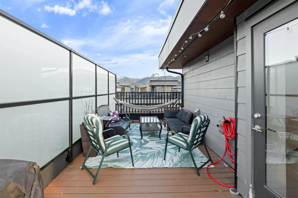 Welcome to this stylish contemporary 3-bed, 2.5-bath townhouse at Lizzy Bay, located in the heart of downtown Squamish. This thoughtfully designed home features a main-level den/flex space with generous storage, three spacious bedrooms upstairs, and an incredible rooftop patio with 360-degree mountain views. The kitchen boasts stone countertops, a gas range, ample cabinetry, and a central island. Enjoy stunning views of of the surrounding mountains from your rooftop deck. Includes 1 parking stall, and 2 storage units, this home is steps from downtown restaurants, amenities, trails, and world-class climbing. Pets and rentals are welcome!