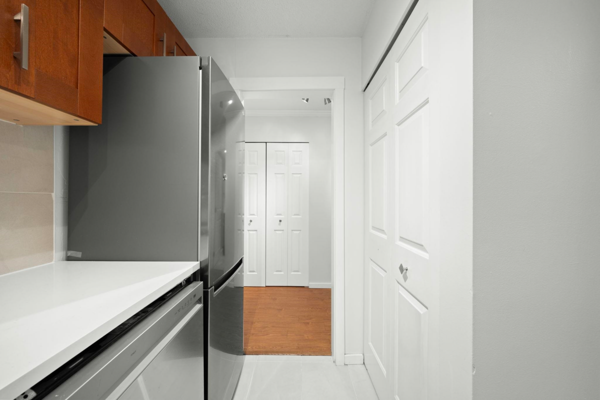 This beautifully and recently updated 620 sqr ft home features 1 bed, 1 bath condo at Regency Court in Uptown New West. Ideal for first-time buyers ready to stop renting and start building equity. The buildings proactive strata recent updates include: New Roof, repiping of the building, new parking lot membrane, new boiler system, and the exterior all repainted. The home itself has been Fully Renovated within the past year, this move-in ready home features stylish, modern finishes throughout. From the fresh paint and updated flooring to the sleek kitchen with contemporary cabinetry and appliances. Located just steps from shopping, restaurants, recreation, and all essential amenities. Don’t miss out – make Regency Court your new address today! Some photos are virtually staged.