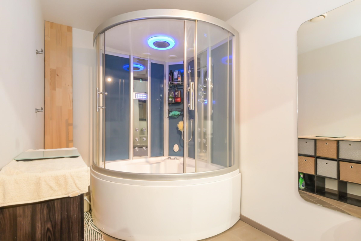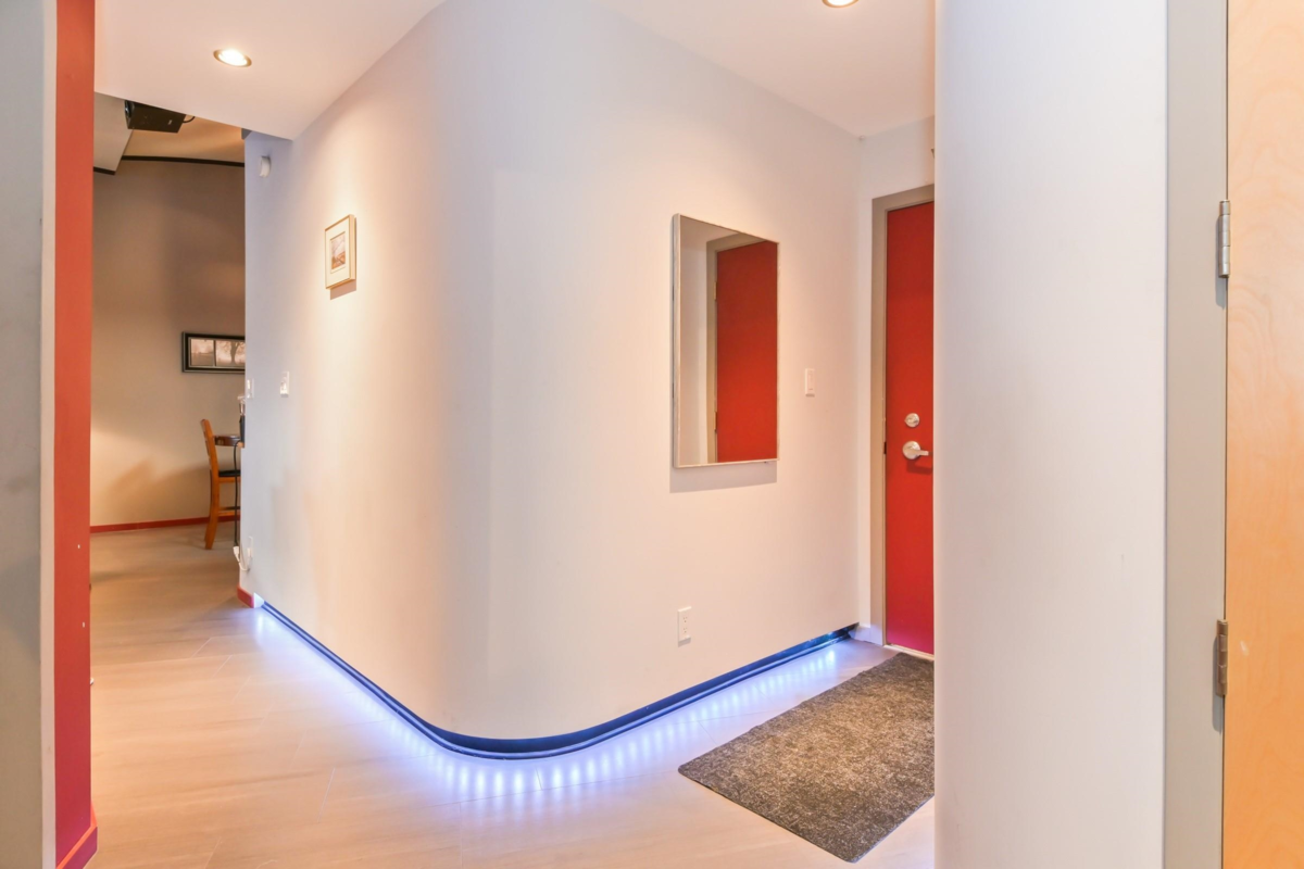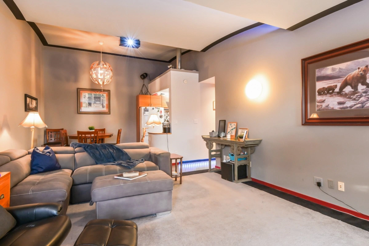 "LET THE GOOD TIMES ROLL" in this 2 Bdrm, 1 Bathrm over 900 sq ft Condo in Central Chwk. Relax in the Lvgrms high 1/2 barrel ceiling with Blt in movie projector, pull down screen & mood lighting. The stylish galley kitchen has butcher block counters, white appliances, soft close drawers, auto undermount lighting too. A modern 4 piece bathrm offers: a circular enclosure jetted tub/shower combination with blt in radio & sauna features, automatic lighting, wave style countertop basinless sink, overhead cabinets and tile flooring. The Primary Bdrm has a sliding door onto the long sundeck. Enjoy other features such as: curved hallway doors, entrance/hallway accent floor lighting, insuite laundry, outdoor hanging solar lighting, rolldown sun screens, all overlooking the common fenced greenspace.