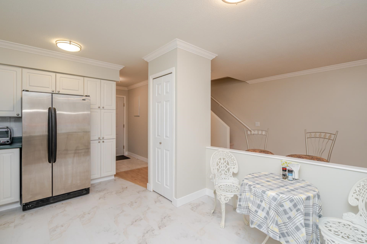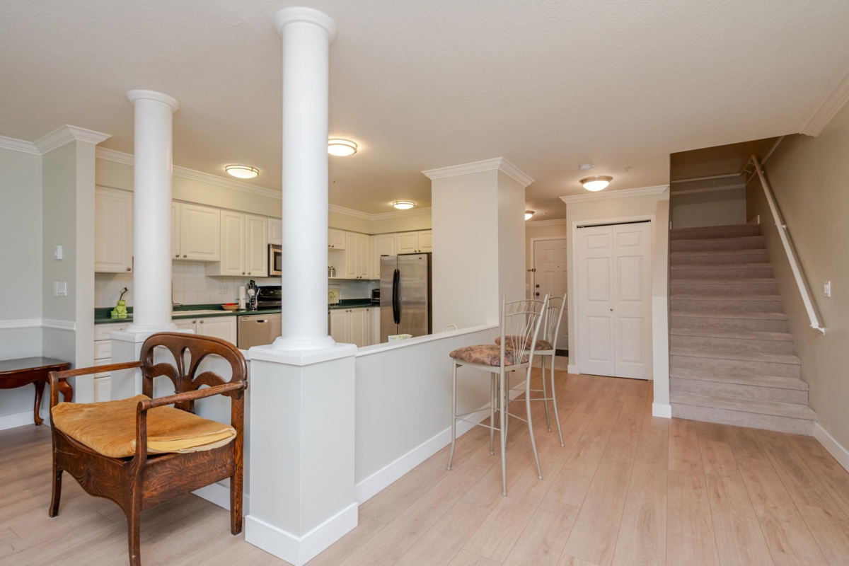 Spacious 2 level Condo. Not your cookie cutter style condo. This suite has 2 levels with living area on the main floor and 2 spacious bedrooms above. 2 sundecks for added enjoyment, cozy gas fireplace, lots of windows for natural light and plenty of storage options. Freshly painted throughout with new flooring, light fixtures and a new hot water tank. 2 parking spaces. Very central location. Walking distance to shops, restaurants and downtown amenities. Close to parks and immediate access to transit.