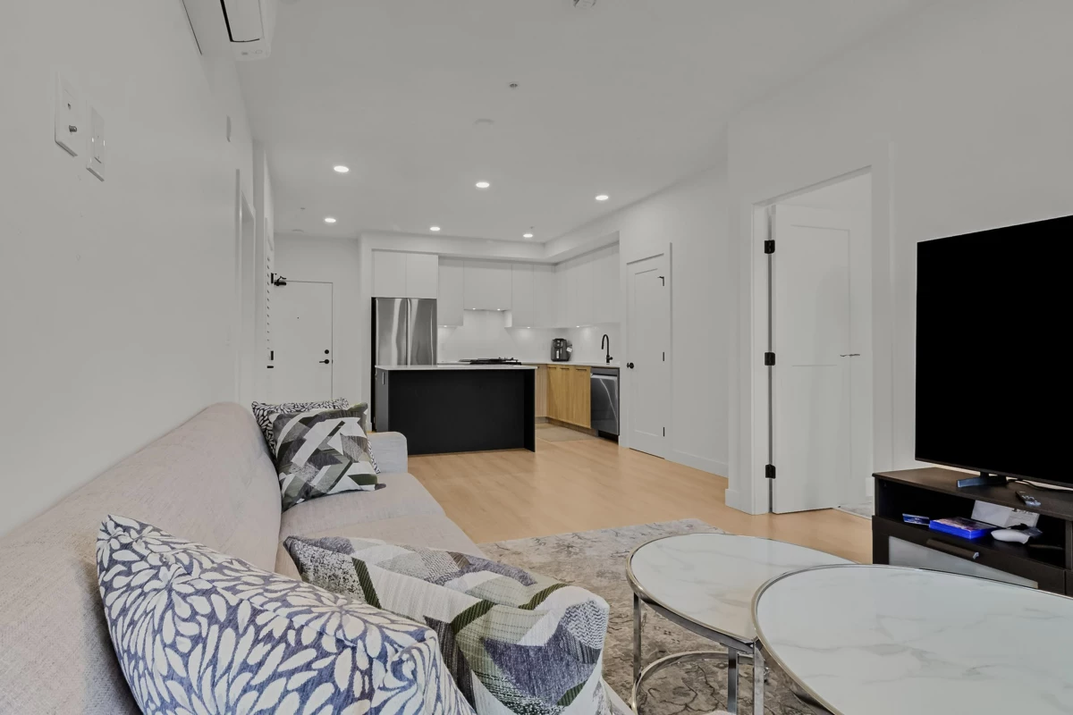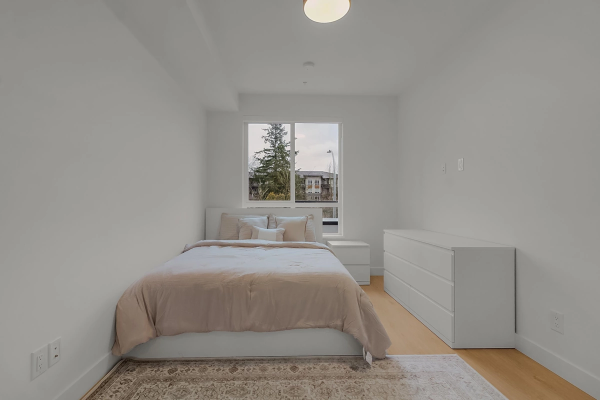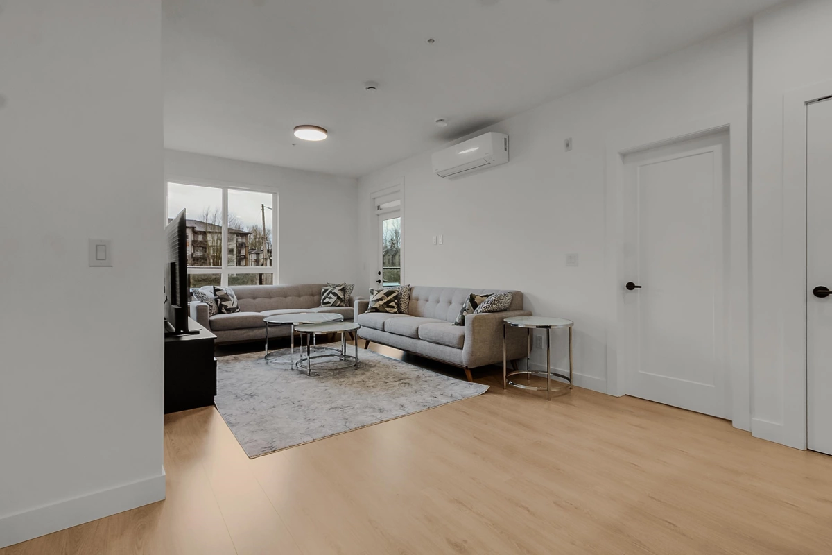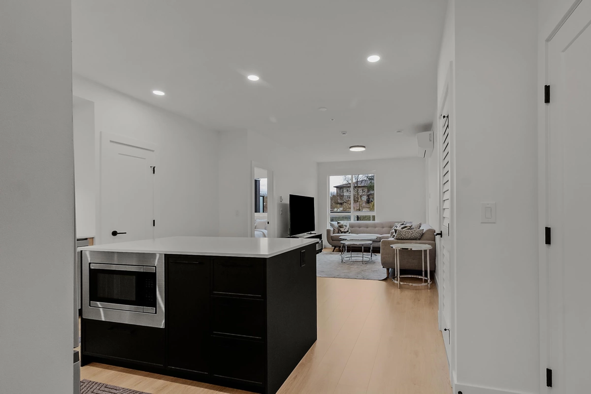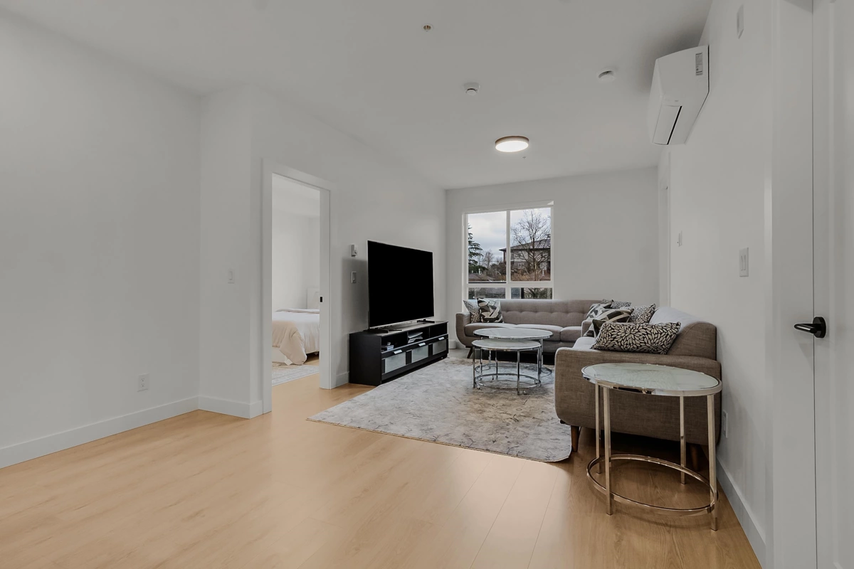 This beautifully finished 858 sq ft residence offers comfort, 1 parking . 1 storage style, and functionality in one of Langley’s most walkable communities. Thoughtful upgrades include air conditioning, laminate flooring throughout, a seamless integrated dishwasher panel, and refined designer finishes.Expand your living space with a 102 sq ft LUMON solarium, enclosed with full-height retractable glass, perfect for enjoying every season. Step outside to your 154 sq ft private balcony, ideal for morning coffee or evening unwinding.Residents enjoy immediate access to 35,000 sq ft of retail and services, along with premium amenities such as a games and party lounge, courtyard recreation area, dedicated dog park, rooftop patio. Conveniently located within walking distance to RE Mountain Sec