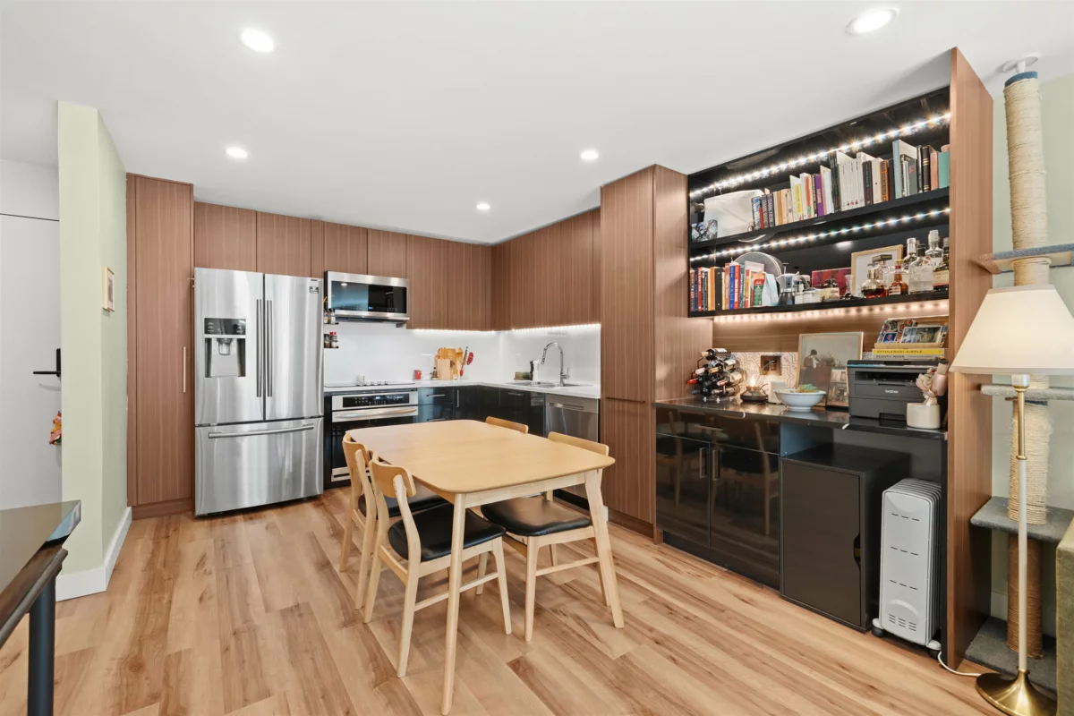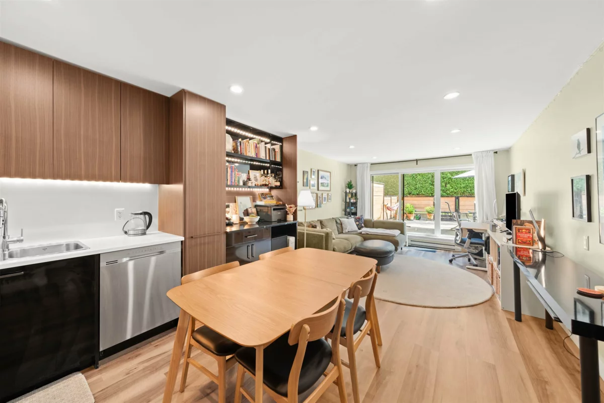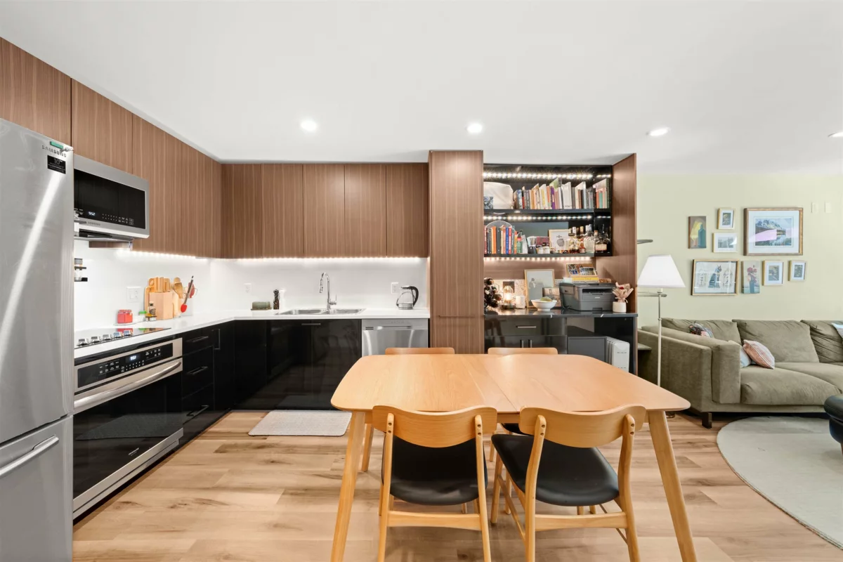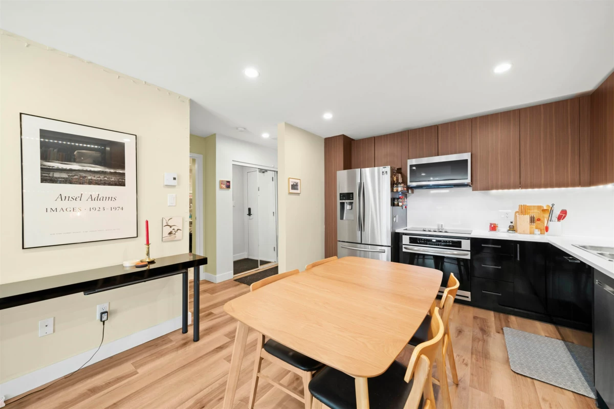 WOW! FULLY RAINSCREENED! COMPLETE BUILDING ENVELOPE WORK DONE in 2019: fibre-cement siding, windows, balconies, waterproofing membrane, fire panel etc. Re-piped in 2013 with PEX, roof done in 2010! The unit has also been through extensive RENOVATION and is like NEW! OPEN kitchen w/ custom cabinetry, vinyl plank flooring, new appliances, strip lighting + HEATED TILE bathroom floors. Step outside to your INCREDIBLE 500sf PRIVATE PATIO — yes, 500sf! Perfect for ENTERTAINING & RELAXING after work. $100K+ in UPGRADES throughout. QUIET yet CENTRAL, steps to Steel & Oak Brewery, SkyTrain, parks & shops. A true gem for those w/ DISTINGUISHED taste. 1 parking, 1 locker.