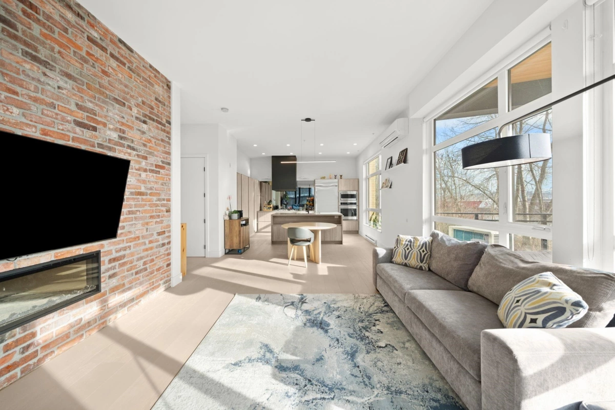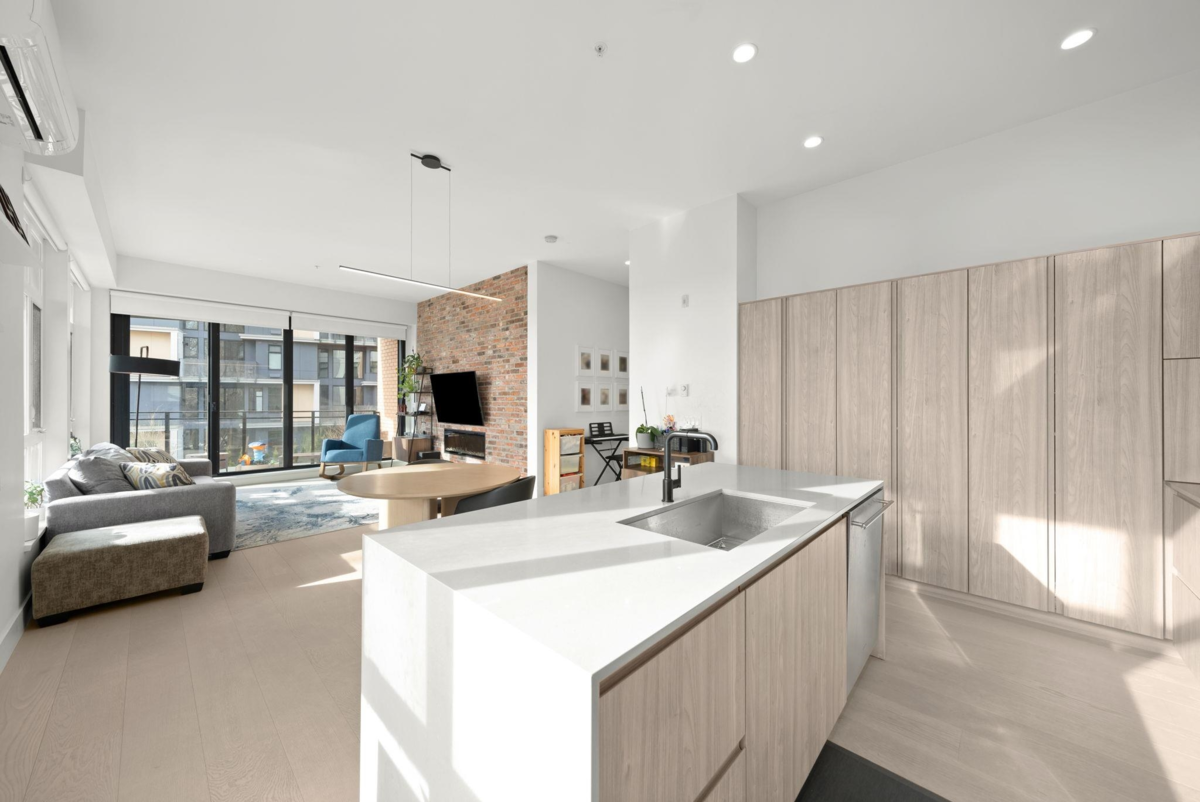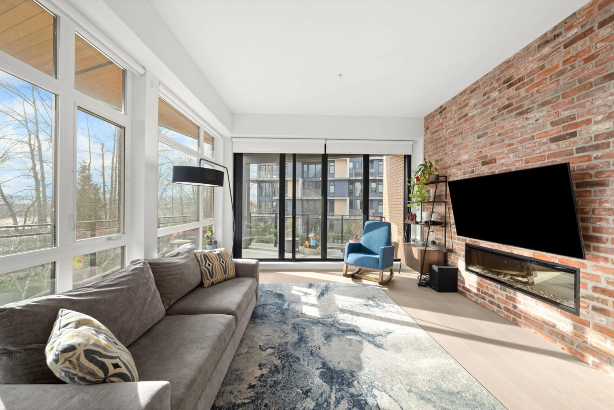 YOUR NEW HOME AWAITS! Welcome to The Light House in Port Royal. This expansive corner, 2 bedroom home features the best that Queensborough has to offer including over 1200 sq ft of AIR CONDITIONED interior space, south facing river views, over height ceilings throughout and extended storage options for your growing family. Sun drenched with natural light, hardwood flooring and a reclaimed brick feature wall showcase details you wont find anywhere else! Sliding accordion style patio doors allow for seamless entertainment options that are sure to please! Top class amenities, pets allowed, steps to waterfront trails and park space. 3 mins to Queensborough Landing Mall! BONUS 2 PARKING STALLS INCLUDED! DONT MISS THIS ONE!