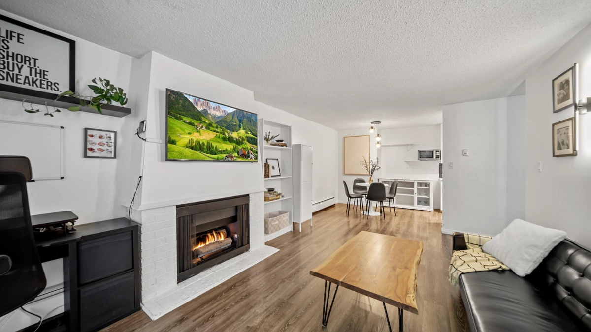 Updated 1bed home with a RARE 428 SQFT PRIVATE PATIO in Burnaby’s sought-after Capitol Hill. Renovated KITCHEN w/ stainless appliances and counters flow into spacious dining + living area with a cozy FIREPLACE. Large bdrm can comfortably fit king-size bed & includes a WALK-IN CLOSET w/ custom shelving. Renovated BATHROOM features stylish finishes & double-sink. Step outside to your FENCED OUTDOOR SPACE w/ garden and fountain - ideal for summer entertaining, gardening, or pets. Well-maintained building with shared laundry, underground parking and storage included. PRIME LOCATION just minutes to HOLDOM SKYTRAIN, BRENTWOOD MALL, Burnaby Heights, parks, trails, shops and restaurants. Move-in ready with the indoor comfort and outdoor lifestyle buyers are looking for.