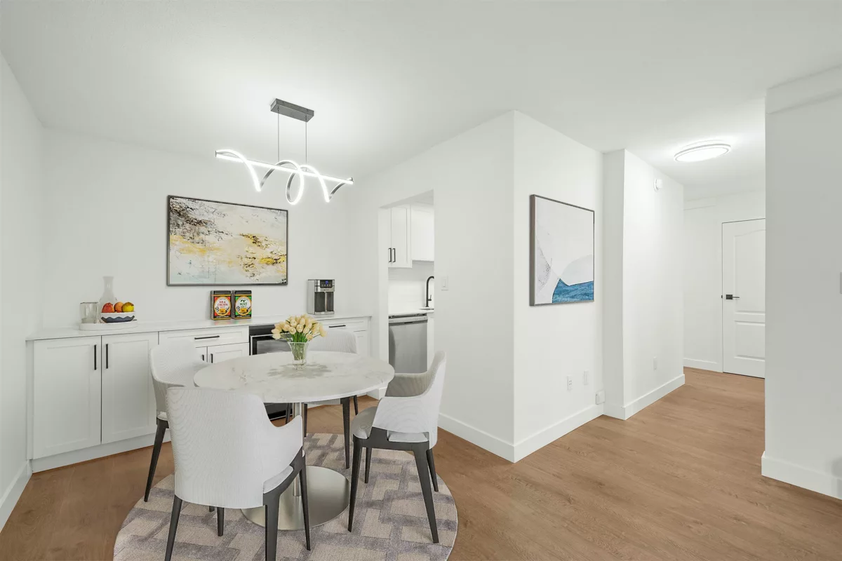 Fully updated 2-bedroom, 1.5-bathroom condo in Richmond's desirable Boyd Park. This modern, bright, and clean unit boasts BRAND-NEW stainless appliances, French door fridge, quartz counter-top, shaker cabinet with extra cabinet and wine fridge in the dining room, and a private balcony overlooking lush greenery, ensuring tranquility as it's situated toward the building's end. Residents enjoy access to exceptional amenities, including indoor and outdoor pools, a hot tub, sauna, gym, and clubhouse. Conveniently located, cross street from Seafair Shopping Centre, minutes walk to West Richmond Community Centre, public transit, Grauer Elementary and Hugh Boyd Secondary. Some photos are virtually staged.