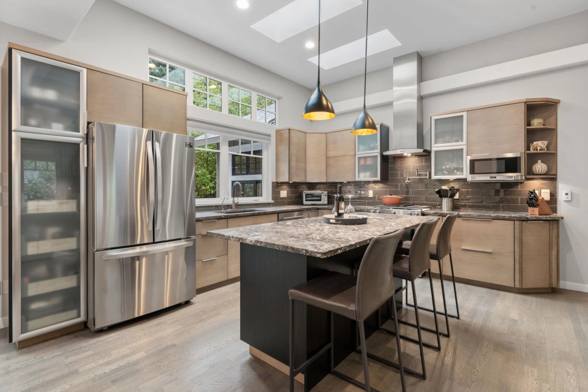How to describe this amazing home? A rare blend of elegance & functional comfort, this residence offers a one-of-a-kind layout design for modern living & entertaining. The upper level features open, light-filled spaces with cozy corners. Stunning living & dining area, three bedrooms, two stunning bathrooms, a family sitting room, & laundry. Below is a fully self-contained 3-bedroom suite with its own entrance—ideal for extended family or a great tenant. A separate-access gym or office adds versatility & privacy. The showstopper: an award-winning detached theatre pavilion with entertaining kitchen & luxe bathroom. Next-level living in one of North Vancouver’s most sought-after neighbourhoods. Where style, comfort, & creativity meet.