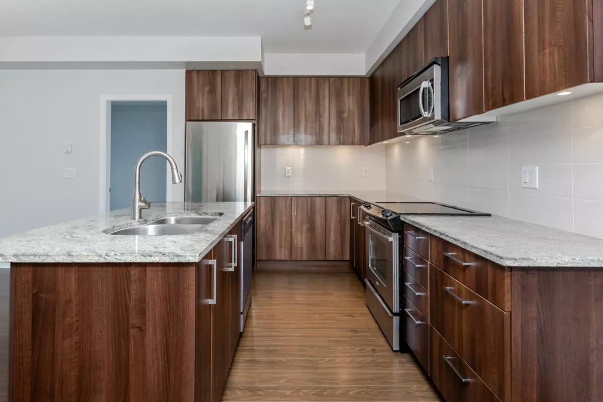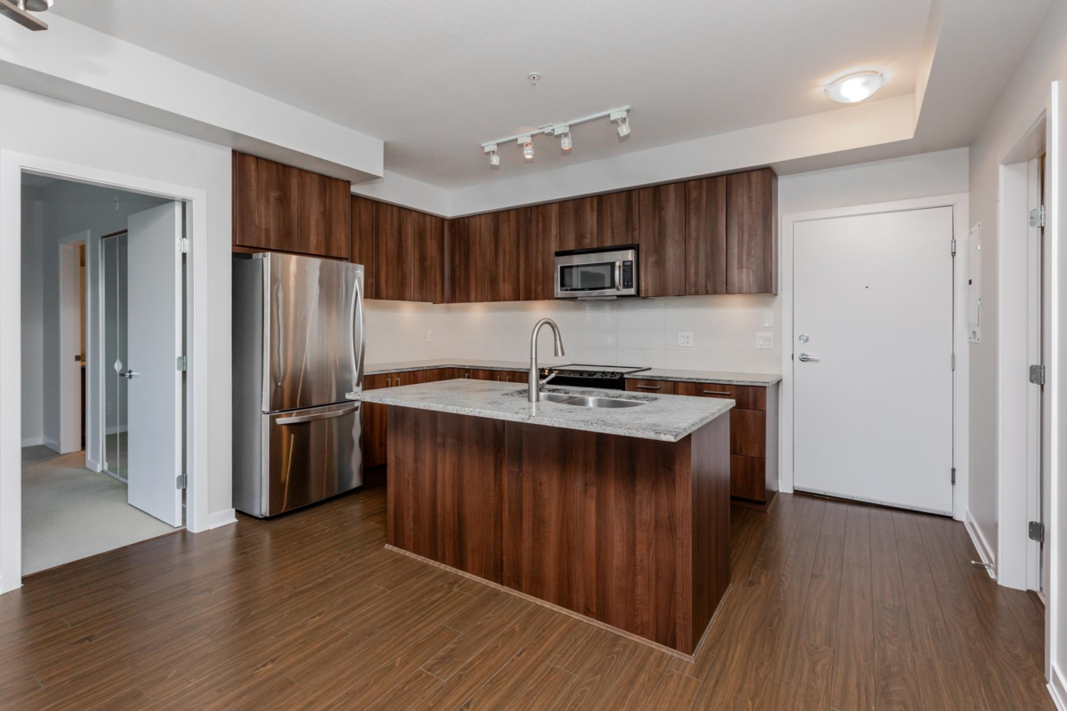 Welcome to sought after Waterstone! This Immaculate 2 bedroom 2 bathroom condo offers unique grade level entry and just steps to the lobby great for guests, pets, walks and deliveries. Enter into this unit and find an open plan, with nice island space, lots of cabinetry with under cabinet lighting and granite counters throughout! The primary bedroom features full bath, large walk in closet as well as a sliding door taking you to an above ground deck with two entrances, backing on to beautiful maple trees, garden space and walking trail! This unit shows like it’s never been lived in. First class amenities include full size indoor swimming pool, hot tub, gym, theatre room and large great room and kitchen for parties and entertaining. 1 parking and 1 Storage.