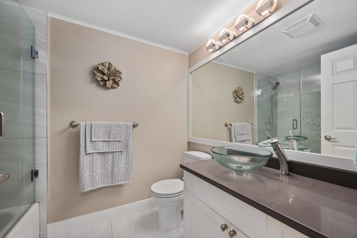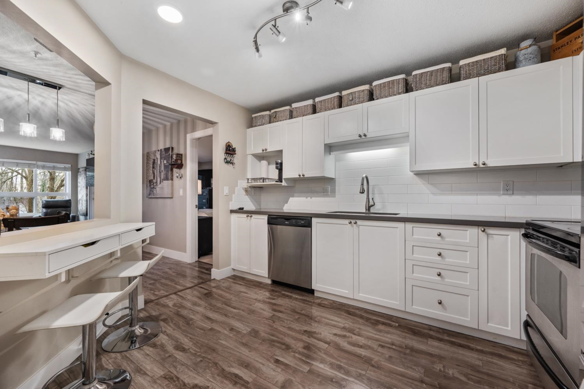 Prime central location! Bright and spacious 2-bedroom, 2-bath condo featuring an open floor plan, cozy gas fireplace, and a covered balcony overlooking a peaceful setting. The primary bedroom includes a walk-in closet, while the second bedroom is conveniently situated next to a full bathroom with a standing shower. Updated kitchen with newer appliances and a window for natural light. Light laminate flooring throughout and in-suite laundry. Well-managed 4-storey building within walking distance of shops, restaurants, medical offices, schools, Scott Road Centre Mall, and transit. Includes 2 parking stalls and a storage locker. Building amenities include a clubhouse, workshop, and bike room. Pet-friendly. Book your showing today! O.H SUN 2-4PM