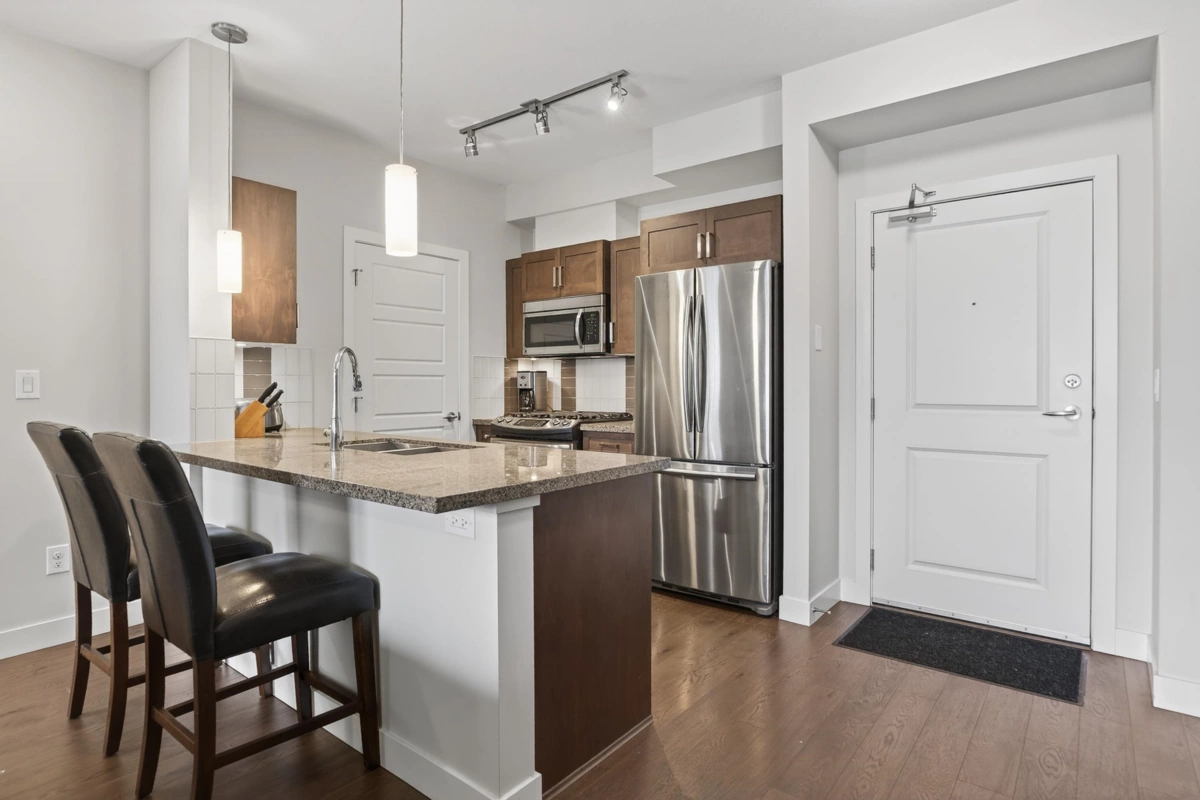 Welcome to Varsity, an amazing complex that is pet & rental friendly! This 2 bed, 2 bath condo is move-in ready & features a BRIGHT, OPEN floor plan w/ bedrooms on opposite sides for extra privacy. Kitchen features SS appliances, GAS range, plenty of cabinets, granite countertops & breakfast bar. There’s a laundry room! (with lots of storage) & a designated dining area, leading to the spacious living room. Enjoy a morning coffee or BBQing on the north-facing balcony (with a gas hookup - & strata fee covers the gas!). Primary bdrm accommodates a king bed & includes a spa-like ensuite with a good-sized 2nd bdrm (B/I closet organizers in all closets!). Centrally located in Downtown Langley, just steps from shopping, dining, schools, parks, recreation & a short walk to future Skytrain station!