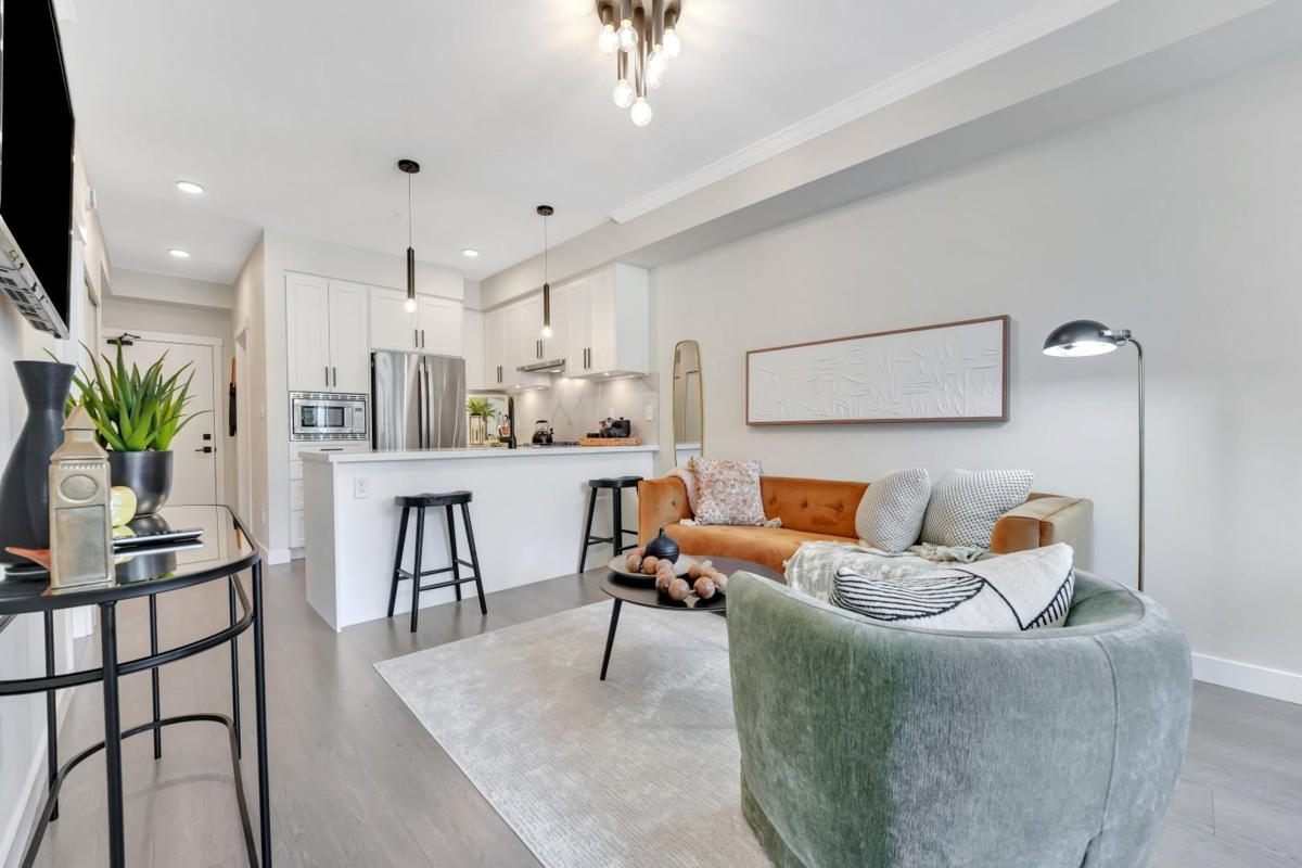 Inspire - Maple Ridge presents a thoughtfully designed 2 bedroom, 2 bath, with 851 sq ft of smart, modern living. This functional layout is enhanced by elegant white quartz countertops, stainless steel undermount sinks, an imported Italian tile backsplash, and quality stainless steel appliances. The living space features refined crown moulding, durable laminate flooring, and soft carpeting in the bedrooms for added comfort. Enjoy access to premium amenities, including a fully equipped gym with cardio and weightlifting gear, a yoga studio, a social lounge with ping pong and foosball, and rooftop patios. Discover inspired living in every detail.