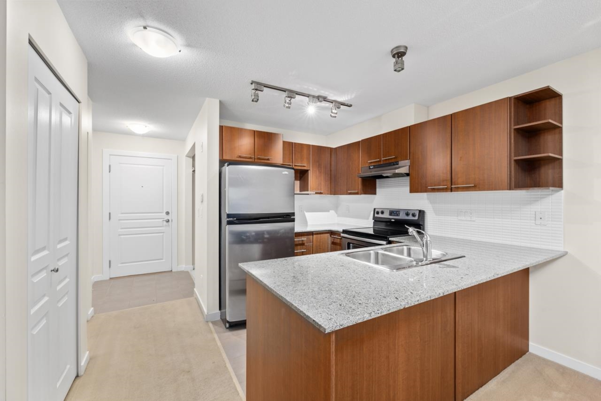 Welcome to the Harris at Brentwood Gate This beautiful 1 bedroom, 1 den & 1 bath is located in the most desirable areas of North Burnaby. Features include: large master bedroom with ensuite & walk in closet, bright & spacious open concept layout, granite counter tops, SS appliances, electric fireplace in suite laundry & a large covered balcony perfect for BBQ. Includes convenient 1 parking, 1 storage locker, pets and rentals allowed. Steps to amazing Brentwood, skytrain, HWY 1 and close to BCIT. Move in ready! Book a private showing today!