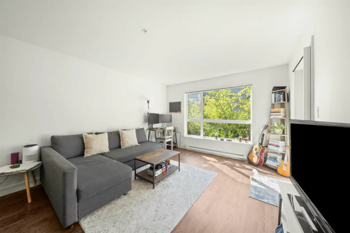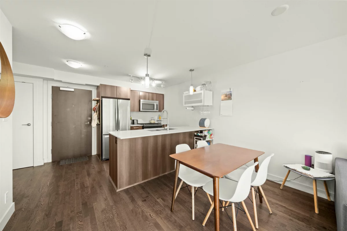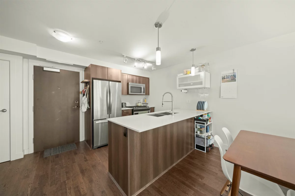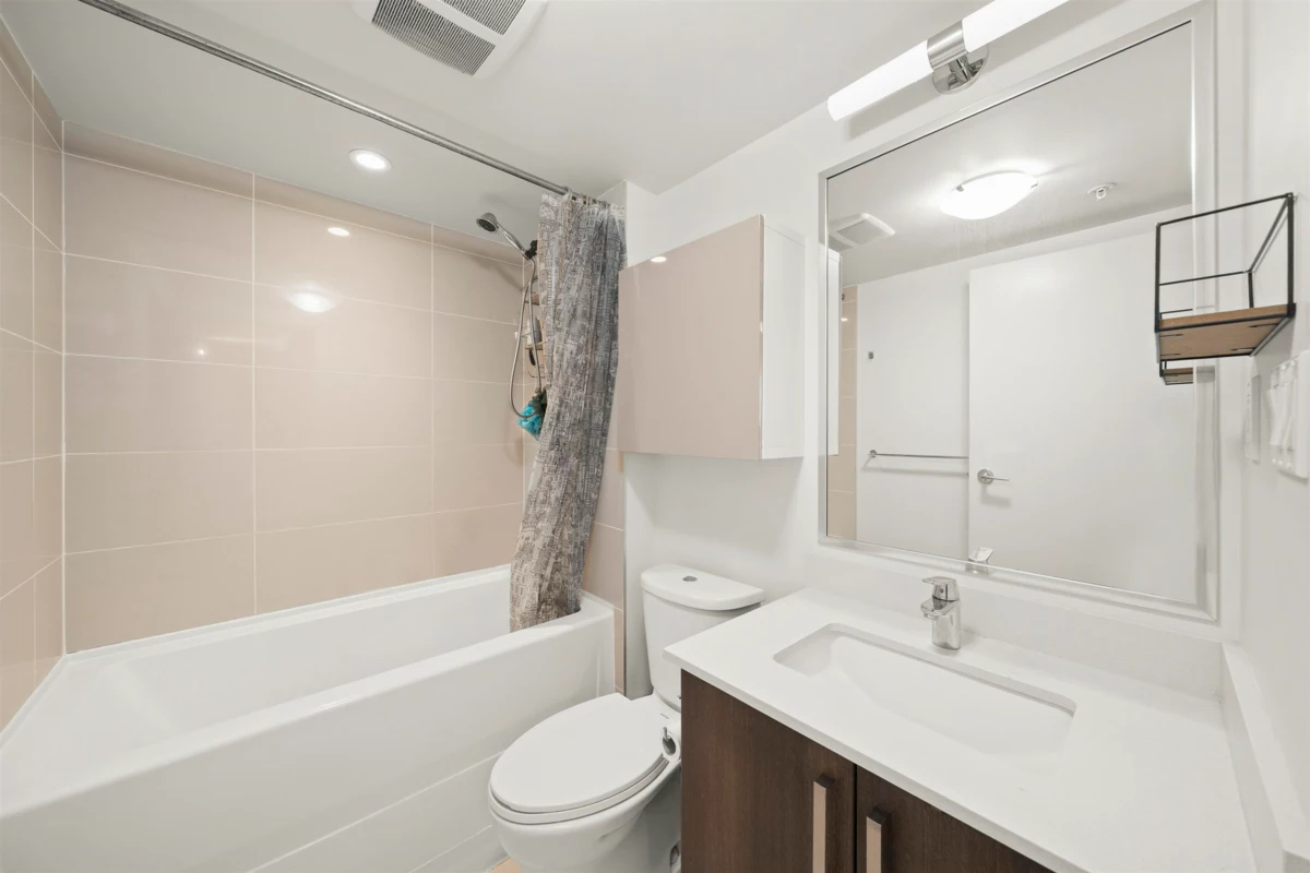 Welcome to Red Brick by Amacon! This courtyard-facing 1 bed, 1 bath plus den home offers a spacious open-concept living. The modern kitchen features quartz countertops, stainless steel appliances and a gas cooktop. The functional and efficient living area is perfect for relaxing or entertaining, while the bedroom easily fits a king-sized bed! Enjoy your private balcony and access to fantastic amenities including a gym, lounge, car wash station and visitor parking with EV charging. This home comes with 1 parking stall and 1 storage locker. Located just steps from Edmonds Sky Train, Byrne Creek Park, schools and Highgate Village shopping. Pet and rental friendly. Ideal for first time buyers or investors!