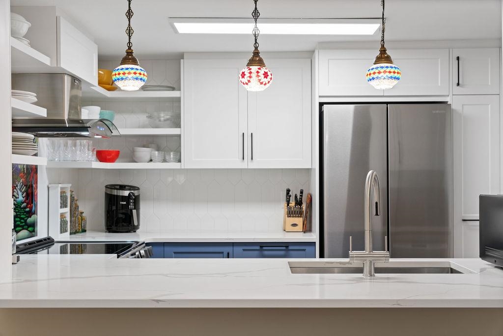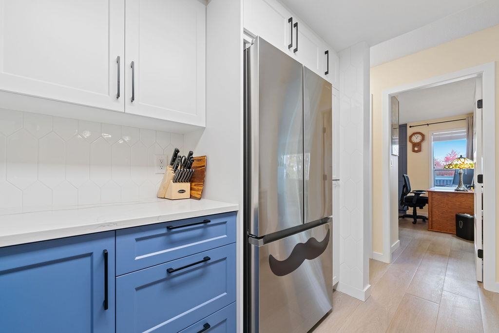 CANTERBURY COURT. A quiet and exceptionally appointed 2 bedroom, 2 bathroom suite that has been ENTIRELY RENOVATED to the owner’s particular tastes and specifications. It shows as great as the photos look. No expense was spared and you’ll never make an improvement for as long as you live here. The EAST FACING aspect is very set-back from Minoru and is quiet and serene. The view is down a treed laneway and very private with no one looking at you. You can live in the heart of downtown Richmond with full transit access, shopping, and Richmond’s best public facilities (Hospital, Pool etc.). All if this is easily walkable without feeling you are in the downtown high-rise jungle. Pets allowed and one parking is included. OPEN HOUSE January 31st and February 1st (2pm-4pm)