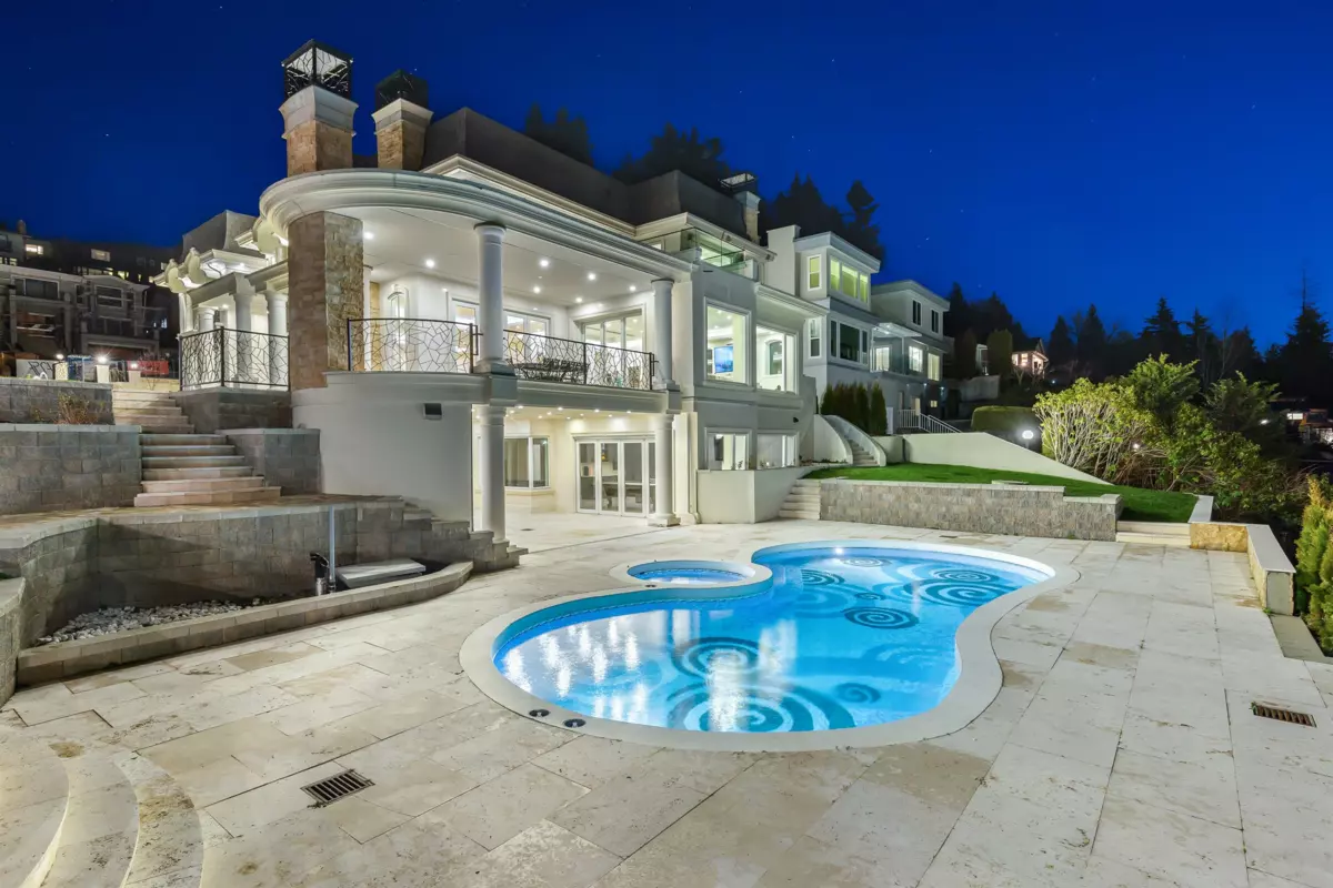 This magnificent European inspired luxury residence by architect Marque Thompson sits majestically on a prized estate property in West Vancouver’s most prestigious Westhill neighborhood boasting unobstructed city and ocean views from Mount Baker to Vancouver Island. Experience unparalleled luxury together with an impeccable choice of quality materials in this 6 bedroom, 8 bathroom 7,325 sq. ft. family home featuring entertainment size principal rooms together with a large gourmet kitchen, 2nd service Kitchen, Wine storage, Home Theatre, Billiard room, resort style swimming pool, spa, elevator, Control 4 Home Automation and fully gated heated driveway with 3 car garage parking. Located close to both Collingwood and Mulgrave Private schools and Hollyburn Country Club.