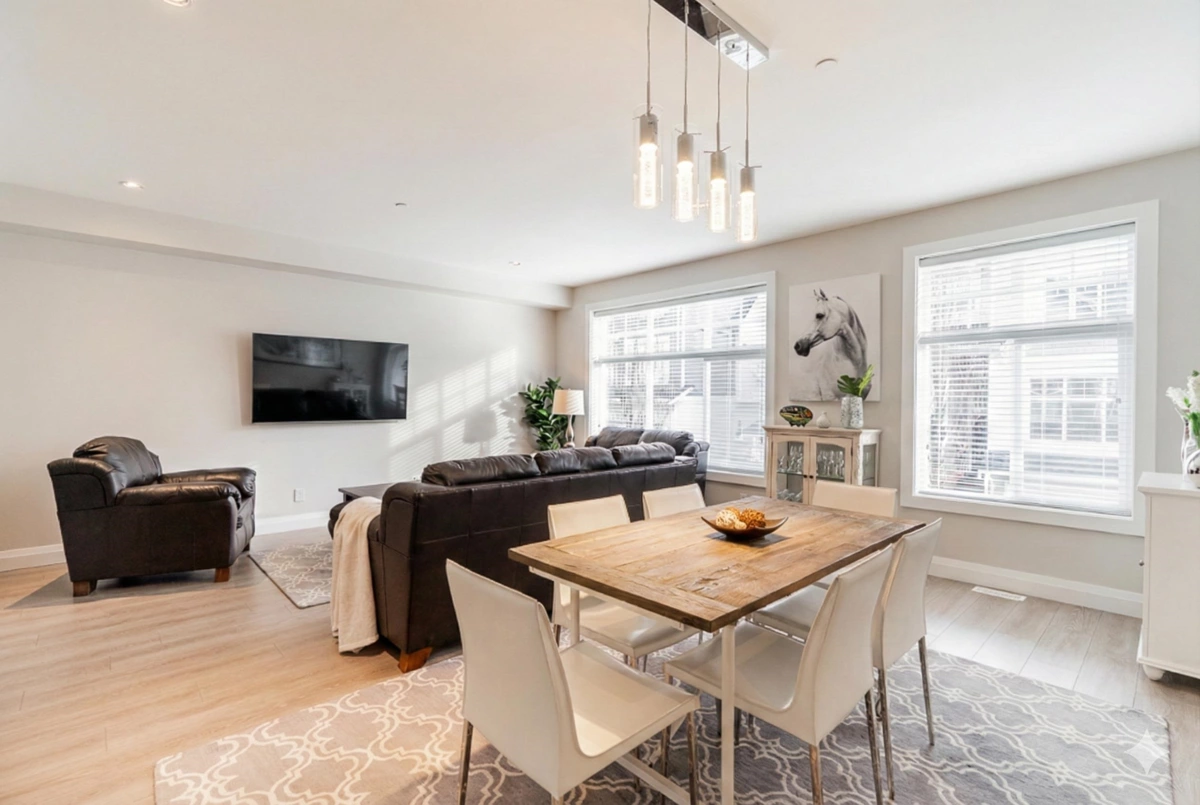 Why settle for a townhome when you can have a house-like masterpiece? This immaculate Former SHOW HOME offers the ultimate in executive living, spanning a massive 2,828 sq ft with 4 bedrooms & 3 1/2 bathrooms. It still shows like the day it was built! Step inside to a world of contemporary style, featuring soaring ceilings, A/C, and large windows that flood the open-concept living and dining areas with natural light. The chef’s kitchen is a culinary dream with modern S/S appliances, a massive island, and endless storage. The lower level is a showstopper: magnificent 10’ ceilings, huge rec room, + a private bedroom and full bath with a separate entry—perfect for guests or extended family. Complete with a double garage, private fenced yard, & upper balcony, this is a RARE GEM must see!