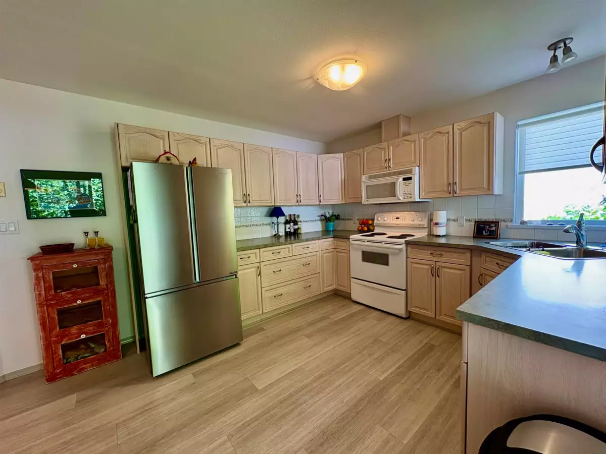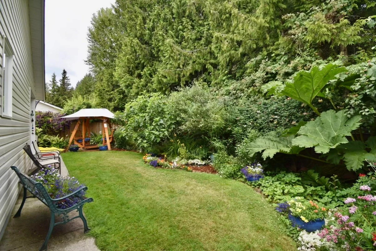 This is the perfect downsizing or enter the market option and offers exceptional value. This 2 bedroom, 2 full bathroom home is move in ready! The large kitchen is perfect for cooking and gathering, while the open layout is filled with natural light. The primary bedroom is large and boasts an ensuite. The garage fits two cars (or one and shop or storage space). Enjoy the fully fenced backyard with vibrant, mature, flowers, plants, and lush, green shrubs—your own private retreat. Gibsons Country Village is about neighbourhood and community & is only just minutes from shopping, dining, and recreation. Comfort, space, and location all in one charming package!