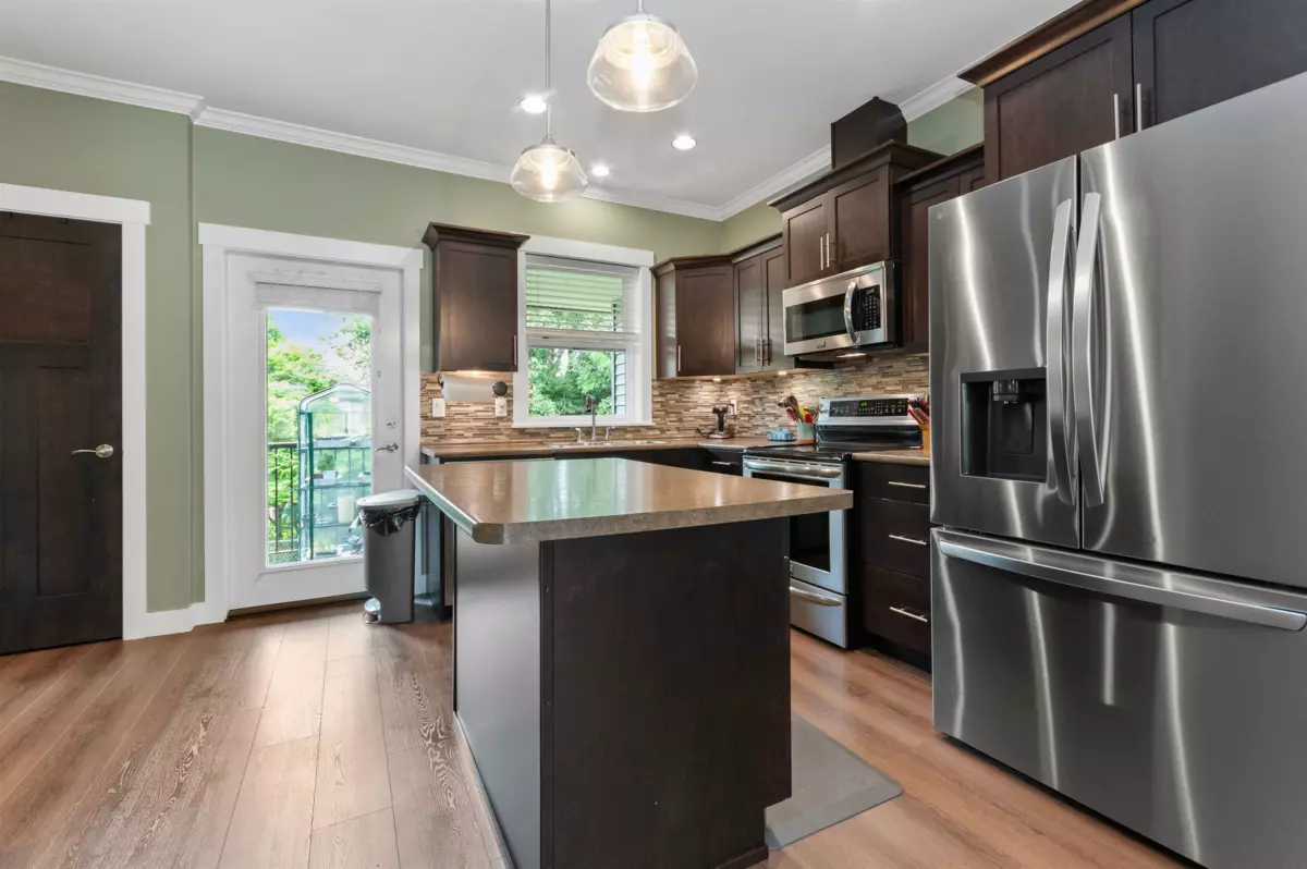 Highly Desirable Location, Immac condition, this 3 Bdrm, 2.5 Bath home has a very spacious layout & features over 1,700 sq ft. Spacious primary bdrm has a full ensuite and enormous W/I closet. Tastefully updated the main floor has new high end vinyl plank flooring. Lovely kitchen backsplash and under cabinet lighting in this delightfully roomy kitchen, featuring an island and large W/I pantry. You'll really appreciate the central A/C. Backs onto a lovely green grass and treed backdrop. Very close to Evans Elementary, Highway 1, Public Transit and plenty of shopping. Small pet friendly. Put this one on your list.