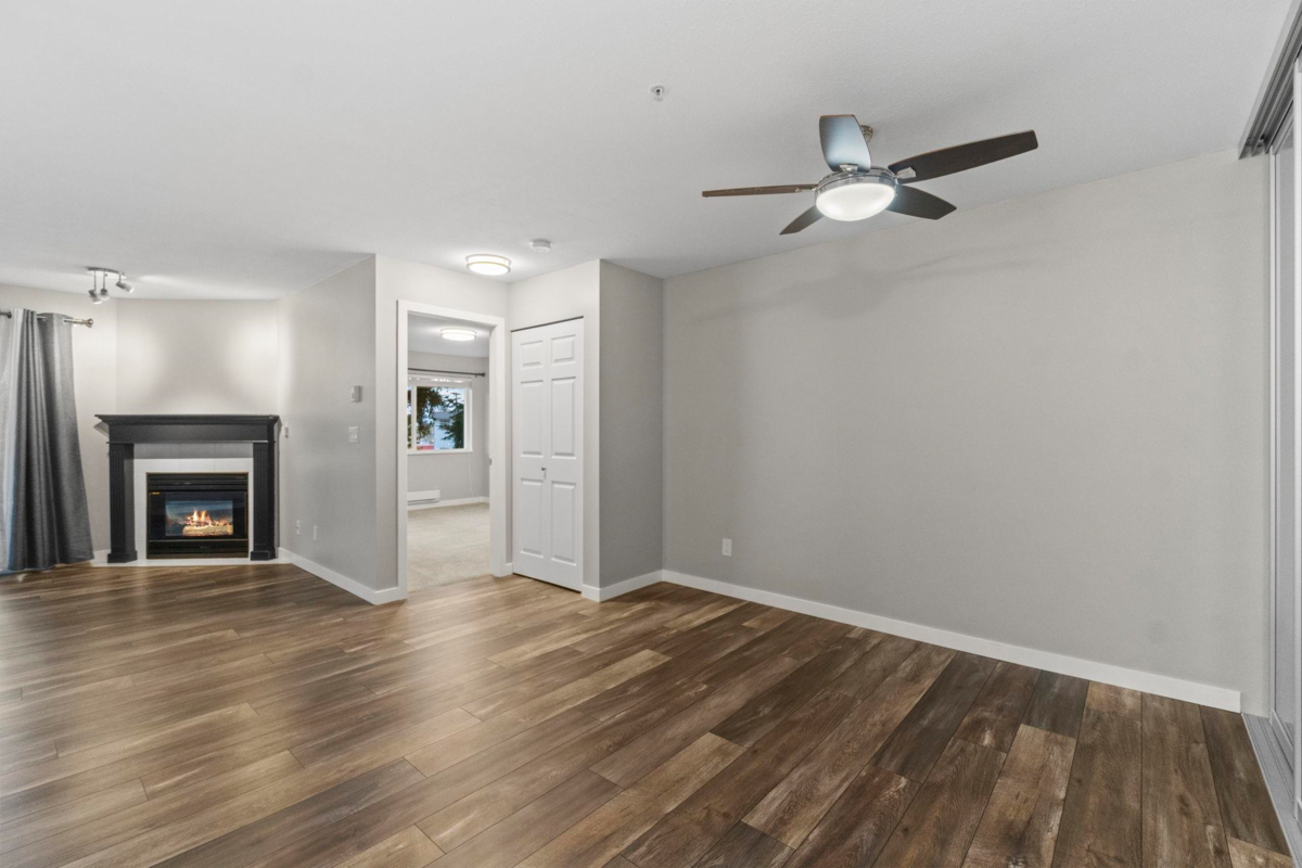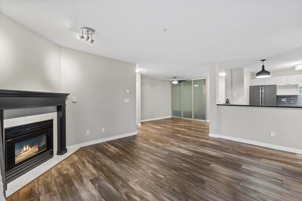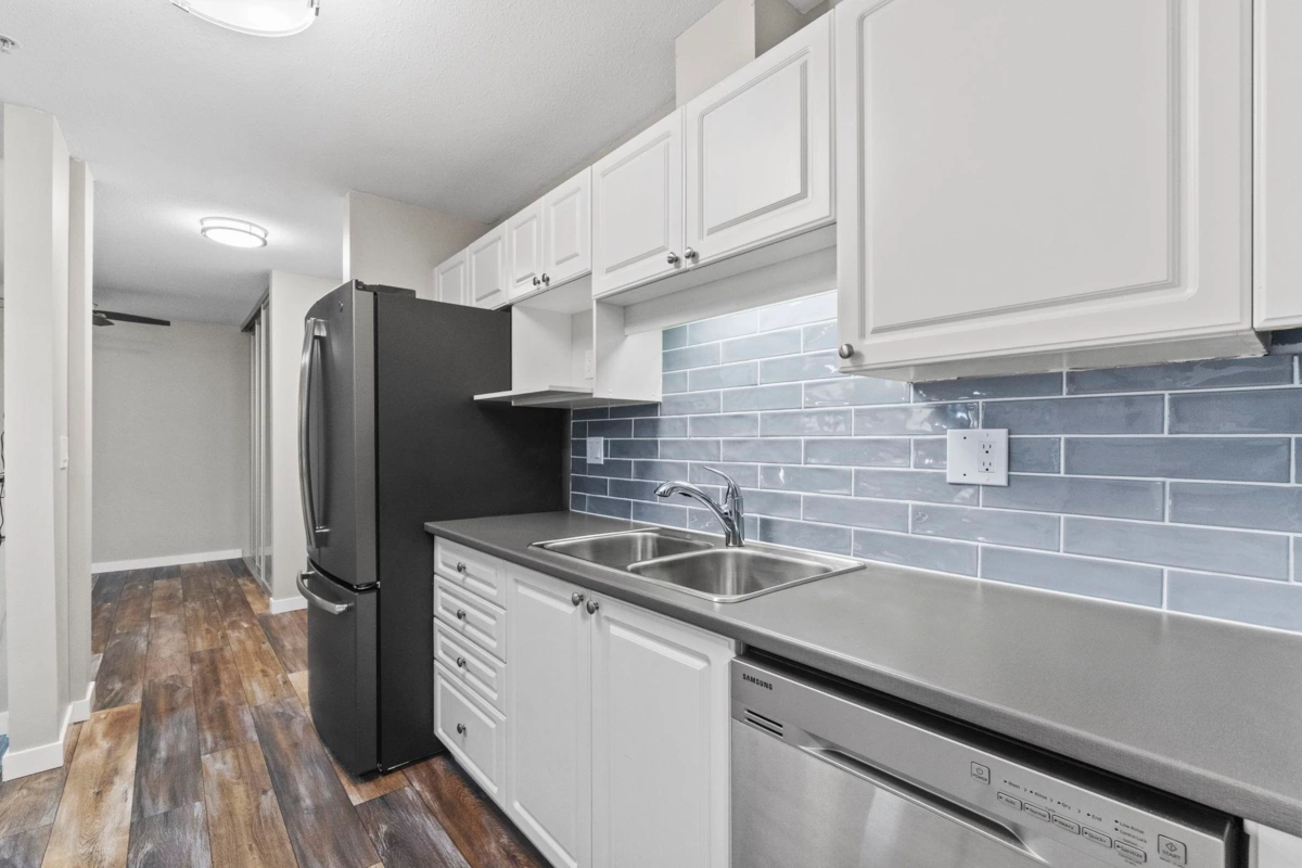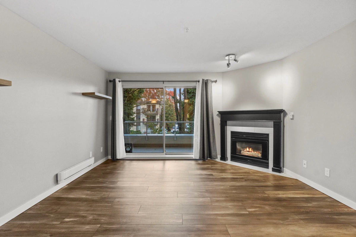 STOP! HERE IT IS! QUALITY & VALUE! EV Parking & a new intercom system just installed in this meticulously well-maintained building! Beautifully UPDATED home offers style and comfort throughout. The modern kitchen features NEW countertops, backsplash, hood fan, sink & faucet. EVERY light fixture is new! Freshly painted all throughout, new laminate flooring, new upgraded mouldings and baseboards create a clean, contemporary feel in every room. BOTH bathrooms have been tastefully redone for a fresh, modern look. Large primary & 2nd bedroom can fit a queen-sized bed. Spacious layout, cozy gas fireplace & large covered deck on the quiet side of the building. Enjoy a MOVE-IN READY home in a quiet, convenient location close to shopping, restaurants, banks, transit, parks & all levels of schools.