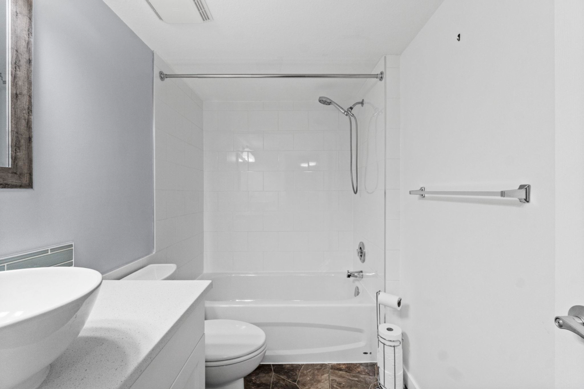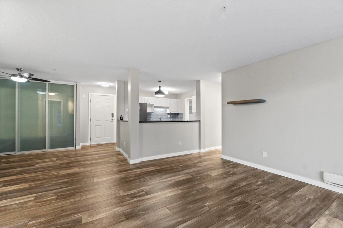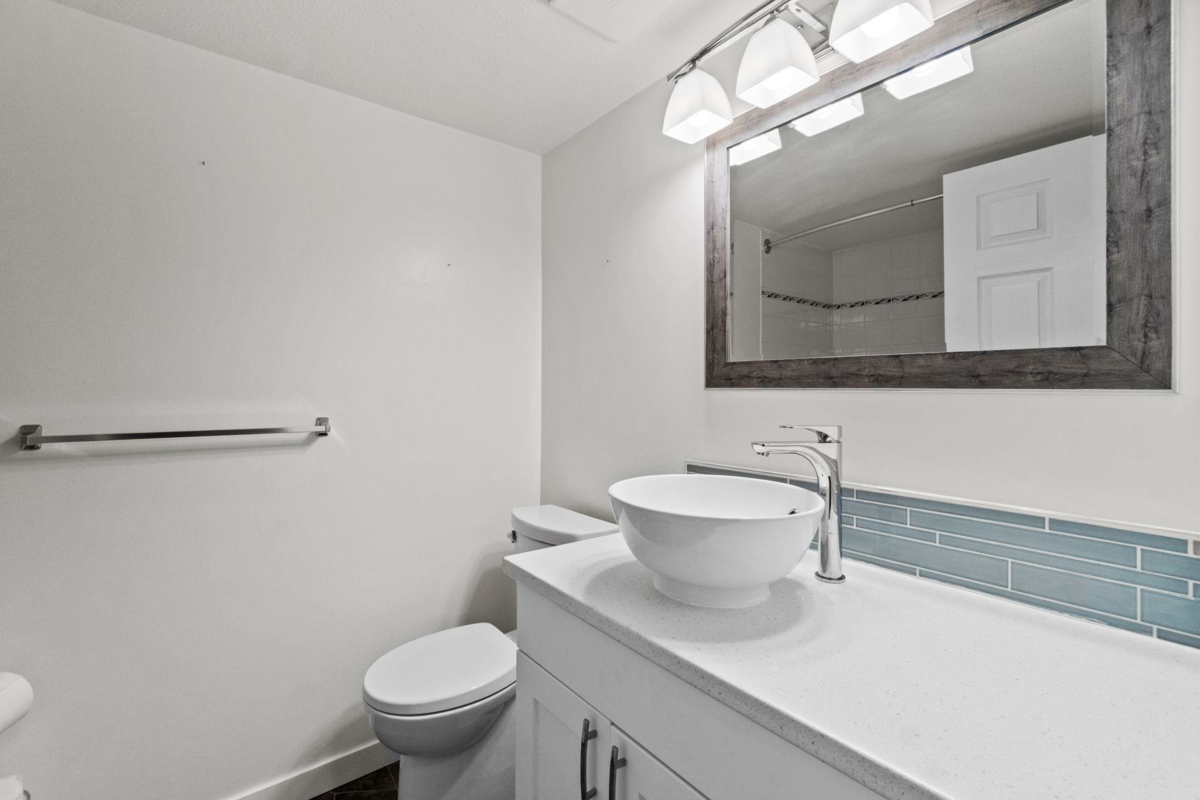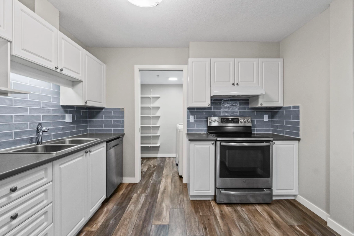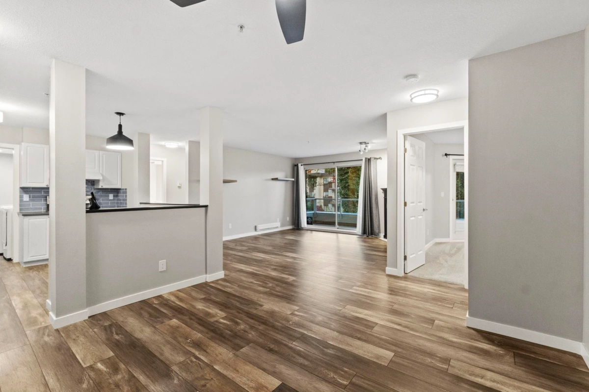 STOP! HERE IT IS! QUALITY & VALUE! EV Parking & a new intercom system just installed in this meticulously well-maintained building! Beautifully UPDATED home offers style and comfort throughout. The modern kitchen features NEW countertops, backsplash, hood fan, sink & faucet. EVERY light fixture is new! Freshly painted all throughout, new laminate flooring, new upgraded mouldings and baseboards create a clean, contemporary feel in every room. BOTH bathrooms have been tastefully redone for a fresh, modern look. Large primary & 2nd bedroom can fit a queen-sized bed. Spacious layout, cozy gas fireplace & large covered deck on the quiet side of the building. Enjoy a MOVE-IN READY home in a quiet, convenient location close to shopping, restaurants, banks, transit, parks & all levels of schools.