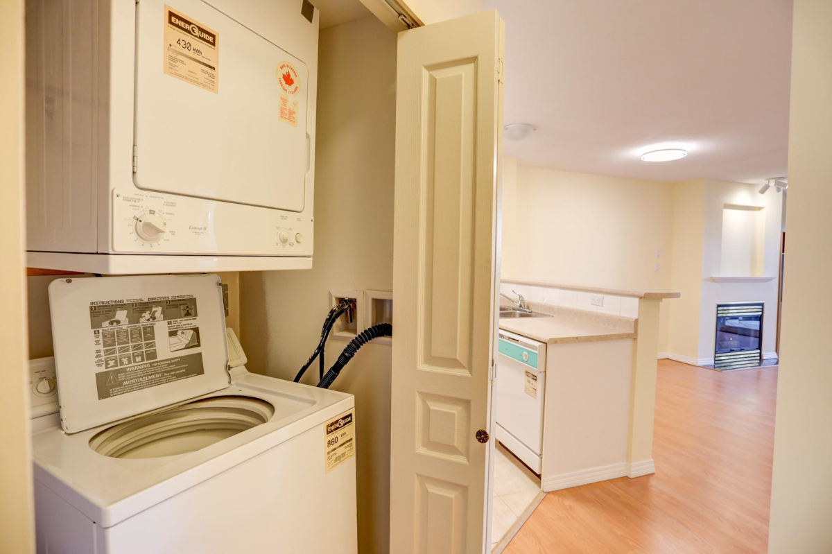 Immaculate & spacious home minutes away from everything you need. The unit faces the quiet side of the building and features beautifully open concept laid out, a cozy gas fireplace, a patio and a flex room could be used as bedroom or office! Fresh paint, new light fixtures. Extensive updates on building completed in 2025 including envelope fully rain screened, balconies, new roof, windows, and re-piping for peace of mind. Move in ready. 1 parking & 1 storage locker included. Don't miss out.