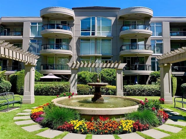 Quality concrete home with full rain screen built by BOSA in convenient central Richmond. Very well maintained complex with recent upgrades: new roof and new carpet in common area. This Unit features huge balcony overlooking fountain courtyard of lush green and with ample room for year round BBQ & entertaining; granite countertops and breakfast bar, ensuite with double sinks and separate shower/tub fixtures. It is on the quiet and cool side of the building. Inside, the apartment breathes with the courtyard's calm and cool air. Believe it or not, you feel like walking into a natural air-con place coming back home in hot summer. This is not just an apartment, but haven of stillness and comfort in the heart of bustling city. Don't miss this sweet deal!