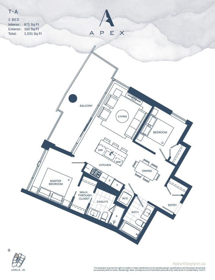 Brand new 22nd floor 2 bedroom, 2 bathroom at highly sought after Apex by Denna Homes. Bright 871 SF West facing unit with 160 SF balcony with unobstructed mountain and city views. This gorgeous unit comes with one EV parking, one storage locker and one bike locker. Apex is a boutique style building which offers concierge, air-conditioning, gym, social lounge, wellness center, bike-repair room, swimming pool, sauna & steam room. GST included in the price. Some photos are virtually staged.