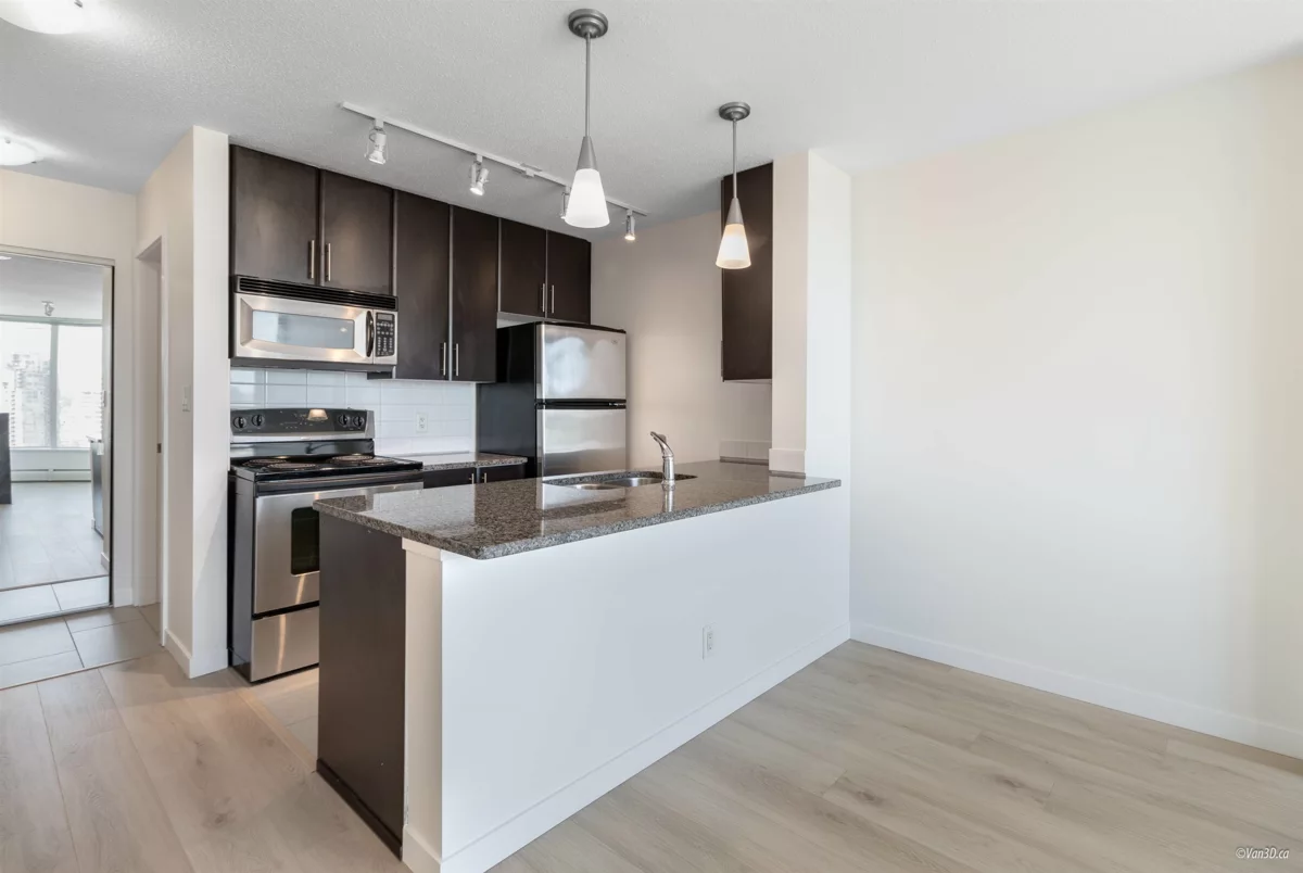 World Class "Firenze II"! Bright, sunny 1 bed + LARGE DEN with cozy SOUTHEAST exposure to enjoy stunningly breathtaking and UNOBSTRUCTED to False Creek water, Mount Baker, parks and city views! NEWLY RENOVATED with FRESH PAINT and LAMINATE FLOORING! The den could be used as the second bedroom if you choose to. Features open concept kitchen with solid granite counters, & s/steel appliances. Fully equipped resort like building is AirBnB friendly with hotel style amenities: long indoor pool, hot tub, sauna, pond, gym + more. Steps to skytrain for an easy commute! Enjoy the proximity to park & Playground, Crosstown Elementary, Cineplex, T&T, Costco, Gastown, Rogers Arena, Yaletown restaurants, and all historic Vancouver has to offer.