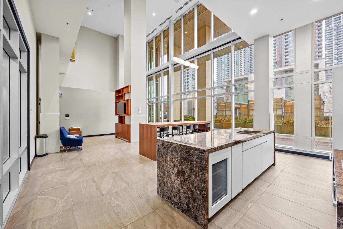 Welcome to Goldhouse South, luxury living in the heart of Metrotown. This air-conditioned 2-bedroom, 2-bath home offers a desirable Northeast exposure and an oversized wraparound balcony, perfect for enjoying morning light and open city and mountain views. Features include a premium kitchen with integrated Bosch appliances, high-end finishes throughout, and 24/7 concierge service. Comes with 1 parking and 1 storage locker. Enjoy over 30,000 sq. ft. of world-class amenities, including a fully equipped gym, social lounge, study/music rooms, large party room, outdoor terrace. Unbeatable location—just steps to Metrotown SkyTrain, Metrotown Mall, Crystal Mall, Bonsor Recreation Centre, public library, and countless shops and eateries. Easy to show! Don’t miss it