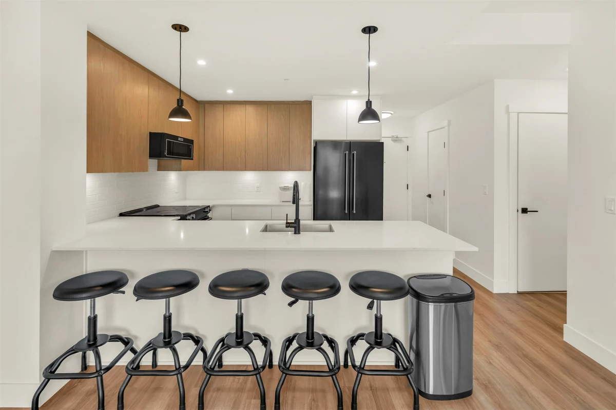 This stunning 3 bedroom & 2 bathroom condo combines modern style, smart design, and unbeatable convenience! Built in 2021 and proudly maintained by the original owners, it offers over 900 sq ft of well utilized living space, including an open-concept kitchen with stainless steel appliances, a bright living room, and spacious bedrooms. Large covered deck to enjoy. Equipped with air conditioning, this home keeps you cool in the summer and cozy year-round. The rare inclusion of two secure parking stalls and an oversized storage locker ensures plenty of room for your vehicles and seasonal items. Located above a variety of shops and eateries, and just steps from the Port Coquitlam Rec Centre, you’ll have everything you need right at your doorstep. All this in a quiet community focused area!