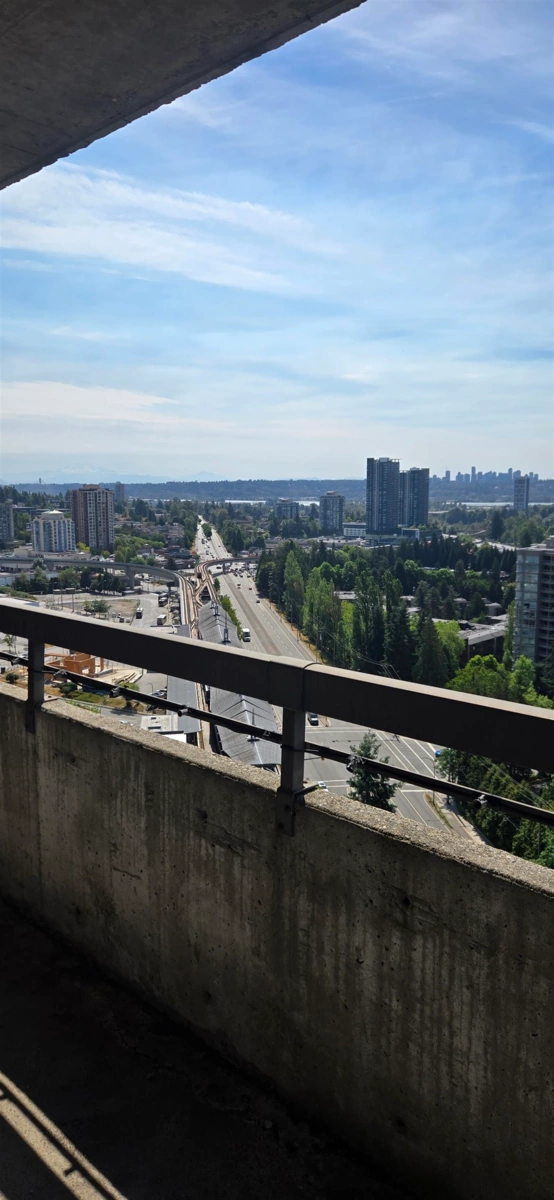 Breathtaking Views from This One-Bedroom Penthouse at Timberlea - Birch Tower! Enjoy panoramic vistas from this stunning corner suite, featuring a spacious wraparound balcony perfect for relaxing or entertaining. This penthouse offers not only spectacular views but also access to top-tier amenities, including an indoor pool, hot tub, sauna, fully-equipped gym, lounge, library, billiards and ping pong tables, a workshop studio, and an on-site caretaker. Includes one parking stall and one storage locker. All just steps from Lougheed Town Centre Mall and SkyTrain for unbeatable convenience. Strata fees cover heat, hot water, and electricity. This condo is a blank canvas-ready for you to put your stamp on it. Don't miss this exceptional opportunity!