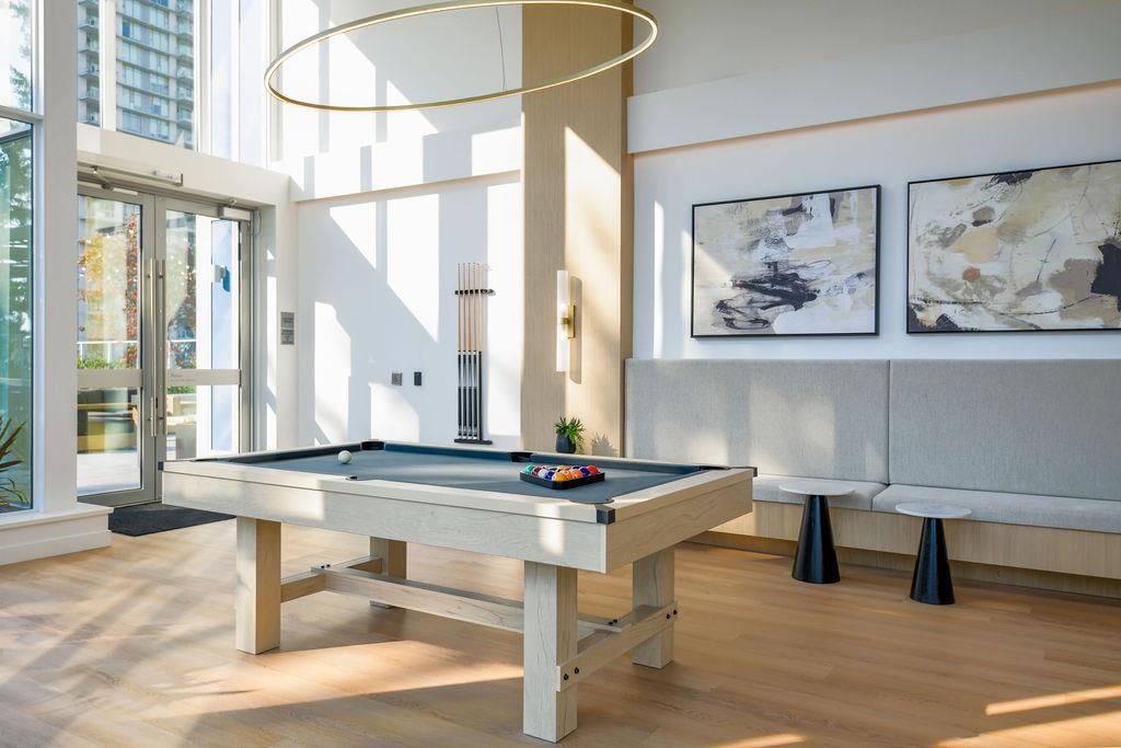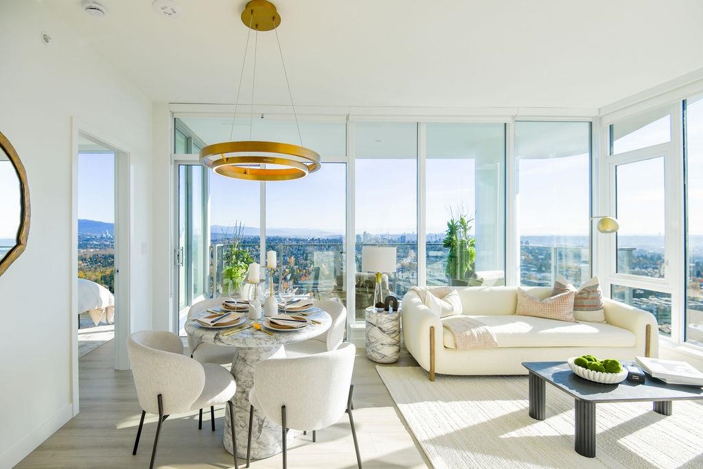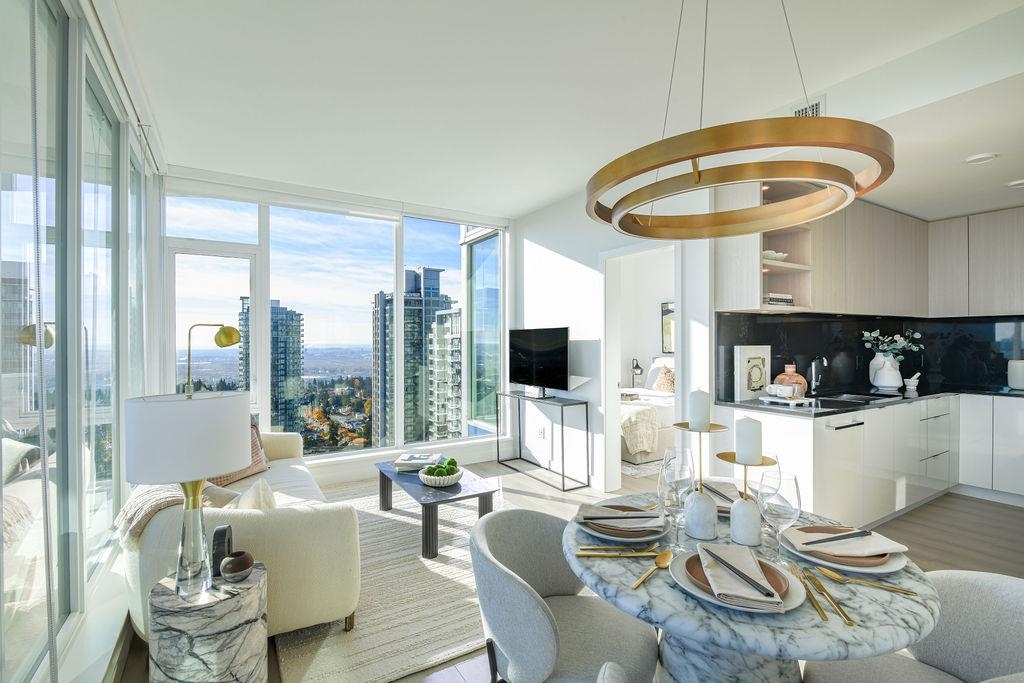 This well-balanced 2-bedroom + den home offers excellent separation between the kitchen and living areas, creating defined spaces for everyday living and entertaining. A southwest exposure fills the home with warm afternoon light and evening sunset views, while the oversized balcony runs along the living and dining area for seamless indoor-outdoor living. The den adds flexible space for a home office or in-home storage. Enjoy hotel-inspired amenities including a Concierge, Fitness Centre, Social Lounge, Guest Suites, and Outdoor Terrace. Perfectly positioned in Metrotown, and within walking distance to two SkyTrain Stations, you are within reach to the best of Burnaby. Built with lasting quality by Ledingham McAllister, BC's original home builder.