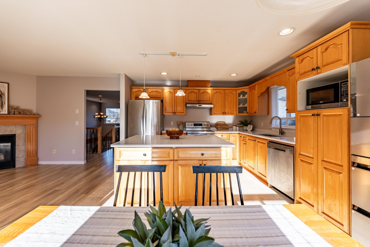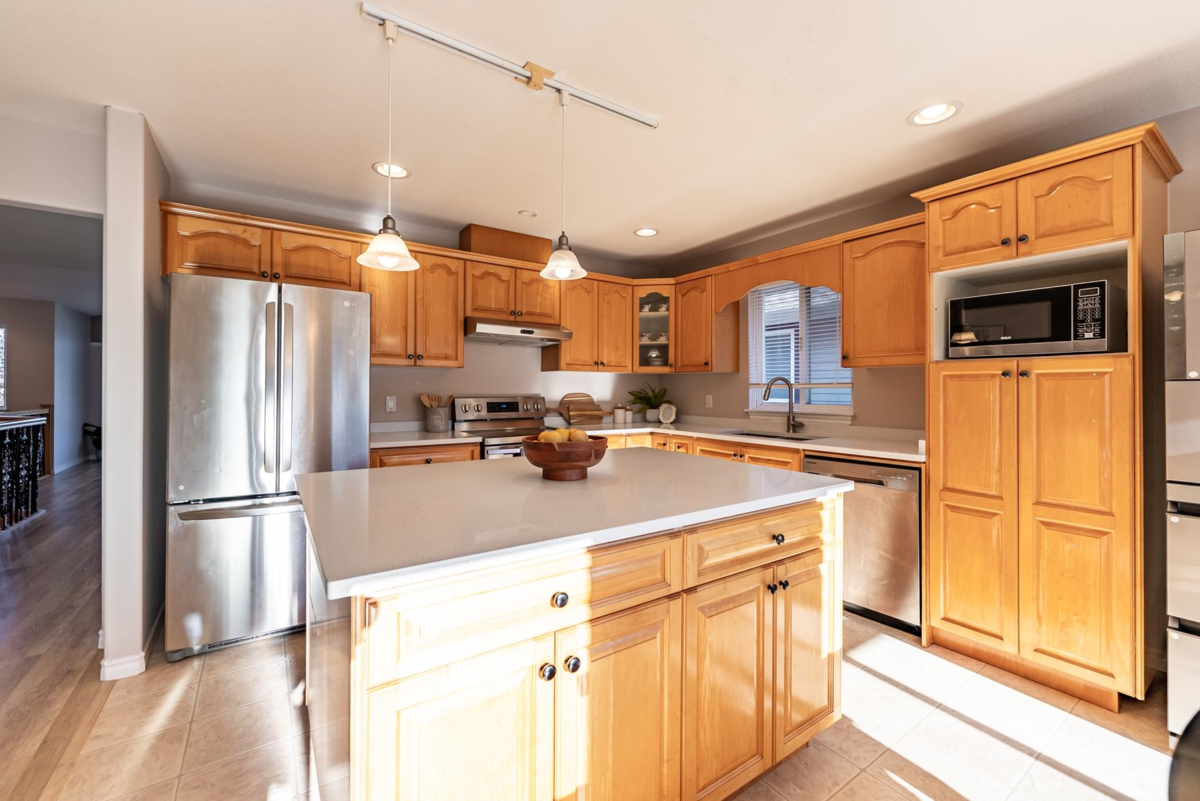 Welcome to this beautifully updated two-level home in a desirable, family-oriented neighborhood. The main floor radiates style with brand-new flooring, countertops, and fresh paint. Enjoy a spacious living area with vaulted ceilings and an open-concept kitchen featuring a maple island. Peace of mind is ensured with a newer roof and hot water tank. The lower level offers exceptional value: a fully finished, self-contained 2-bedroom rental suite with separate entrance—an excellent mortgage helper! Plus, homeowners retain a bonus rec room and guest room downstairs. Outside, relax in the private, landscaped south-facing backyard. Located steps from Alouette Elementary, Maple Ridge Secondary, parks, and transit.