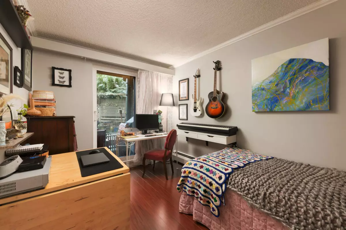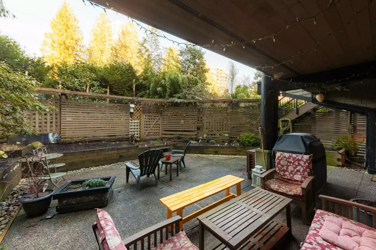 A rare ground-level residence that lives like a private garden home. This 2-bedroom, 1-bathroom walk-out suite offers 848 sq.ft. of interior space with direct access to an exceptional over-sized 410 sq.ft. private patio - a true outdoor oasis ideal for lounging, dining, or entertaining. Framed by mature greenery, it offers privacy, scale, and seamless indoor-outdoor flow rarely found in condo living. Located at The Beresford, a respected Bosa-built community centred around an award-winning landscaped courtyard with pond and expansive deck - tranquil, green, and beautifully maintained. A functional layout, abundant natural light, and steps to shops, restaurants, Edmonds Station, and the Byrne Creek trail network complete the lifestyle. Distinctive. Peaceful. Seldom available.