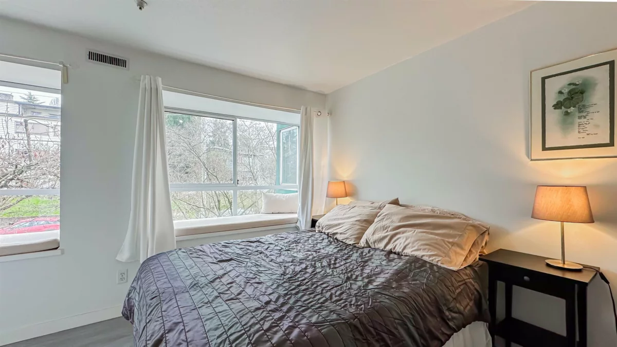 Roof top deck with PANORAMIC WATER & MOUNTAIN VIEWS of the Golden Mile and more! Stylishly renovated 690 sq.ft. 1 bed/1 bath plus open den plus solarium home at the well-maintained, rain-screened Pacific Landing. Thoughtfully laid out with bright, open living area and an entertainer-friendly kitchen featuring quartz countertops, newer appliances, and a generous eating bar. East-facing windows bring in soft morning light and overlook mature trees for a peaceful outlook. The open den offers an ideal work-from-home setup, while the solarium adds flexible living space. Spacious bedroom with walk-in closet and cheater four-piece bath. In-suite laundry and excellent storage complete the home. Enjoy BBQs and breathtaking views from the shared rooftop deck. Open House Sat Jan 31, 2025 | 11am–1pm