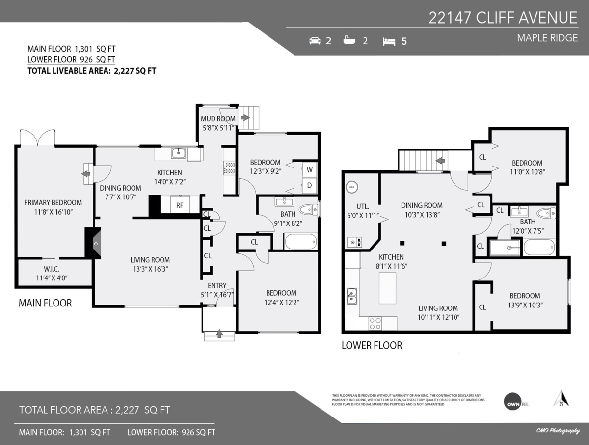 LAND ASSEMBLY in downtown Maple Ridge! Recent OCP amendment supports Low Rise Apartments 4-6 stories. Located within the Lougheed Transit Corridor and just outside the outer of the Transit Oriented Area. FSR up to 2.5 (includes bonus density) and all service at lot line or nearby. Situated on a quiet dead-end street, with lane access and the top floors will have unobstructed views of the Fraser River! Only steps from the West Coast Express, downtown Haney which includes shopping, restaurants, recreation and more! To be sold as a package with 22119, 22127, 22137, 22155 and 22165 Cliff Ave. Package price $11,999,400. Private showings only! Do NOT walk on the properties without an appointment.