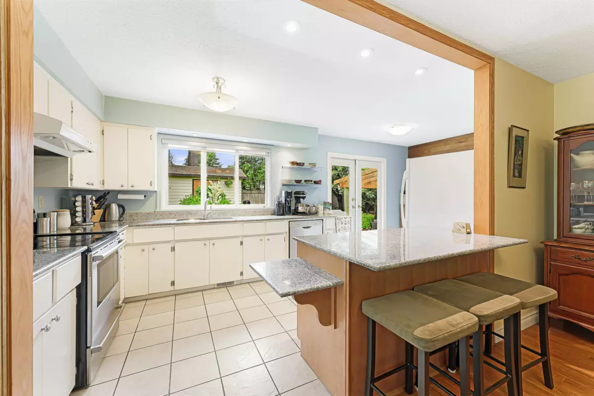 Super comfortable, 1783 sq ft 3 bedroom, 3 bath, family home situated on a gorgeous 7936 sq ft corner lot with R3 Zoning within Surrey's new "frequent bus stop" zone. This home was nicely renovated about 22 years ago and has been meticulously maintained and shows pride of ownership. Walk in through a small entry room and into an open living space with gas fireplace and hardwood floors. Nicely appointed kitchen with newer appliances and granite countertops, french doors open to a stunning back yard deck. A spacious family room with gas fireplace and a walk out to a beautiful private patio with pergola. Upstairs has hardwood floors, 3 nice sized bedrooms and 2 updated bathrooms. The primary has ensuite. Cozy family home now and great development potential in future. Motivated seller!