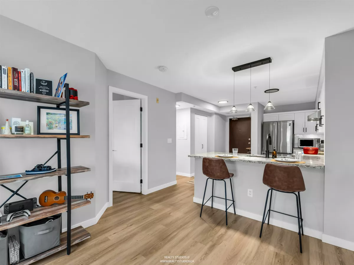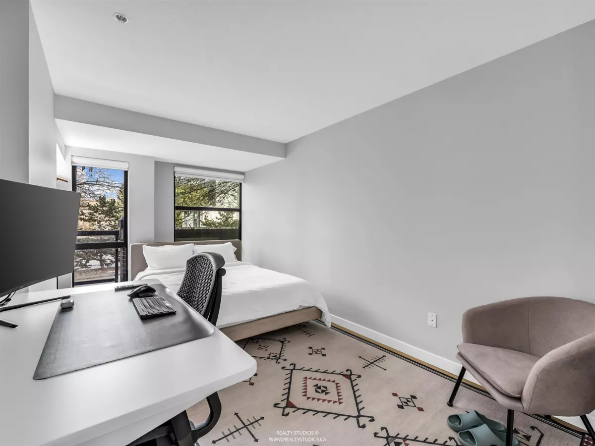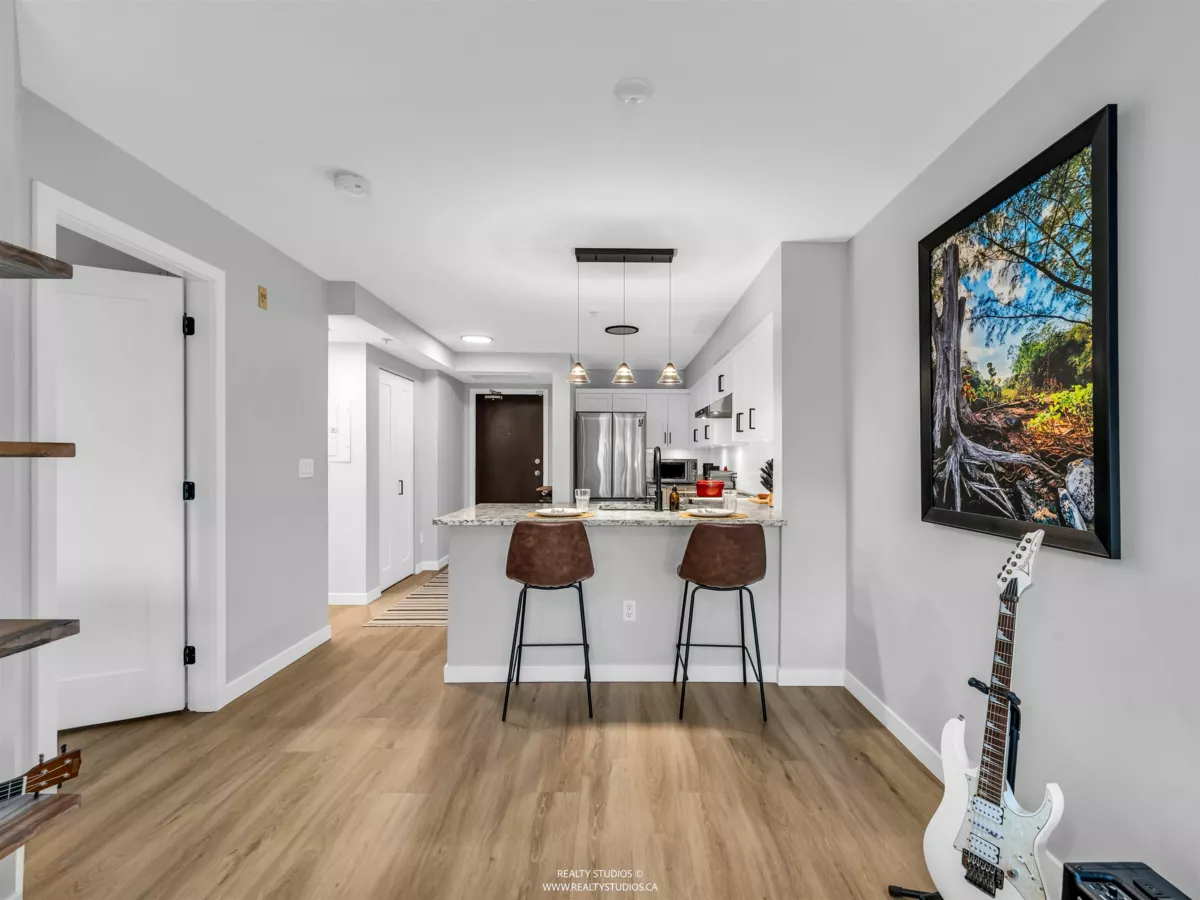 A rare standout. Thoughtfully updated throughout with new countertops, fresh paint, refined flooring, and a beautifully reimagined kitchen that feels both modern and timeless. The space is calm, bright, and impeccably finished—every detail considered, nothing left to do. An intelligent layout offers effortless flow, generous room sizes, and excellent separation for everyday living. Large windows invite natural light while the home remains quietly positioned within the building. Secure parking and storage included. Steps to SkyTrain, dining, and shops, yet a retreat from the pace of the city. A home for buyers who notice quality—and expect it.