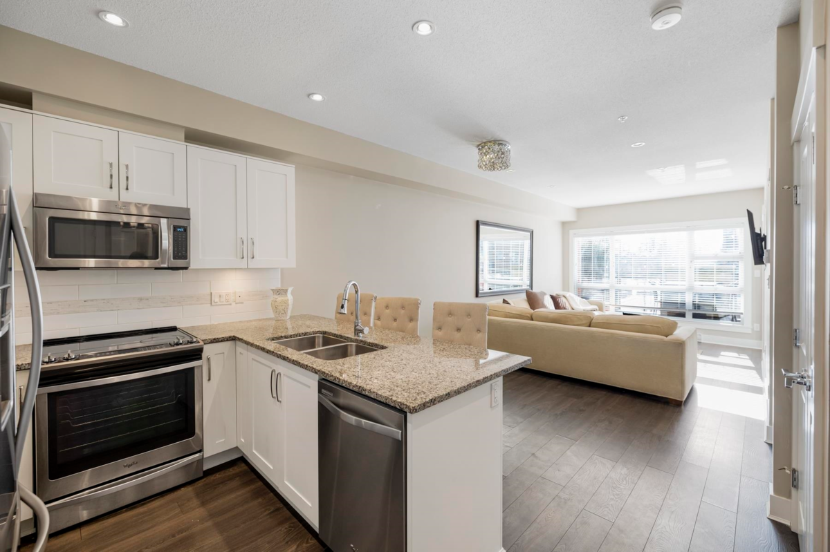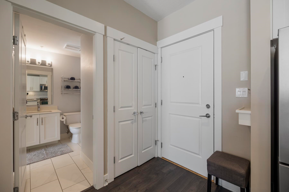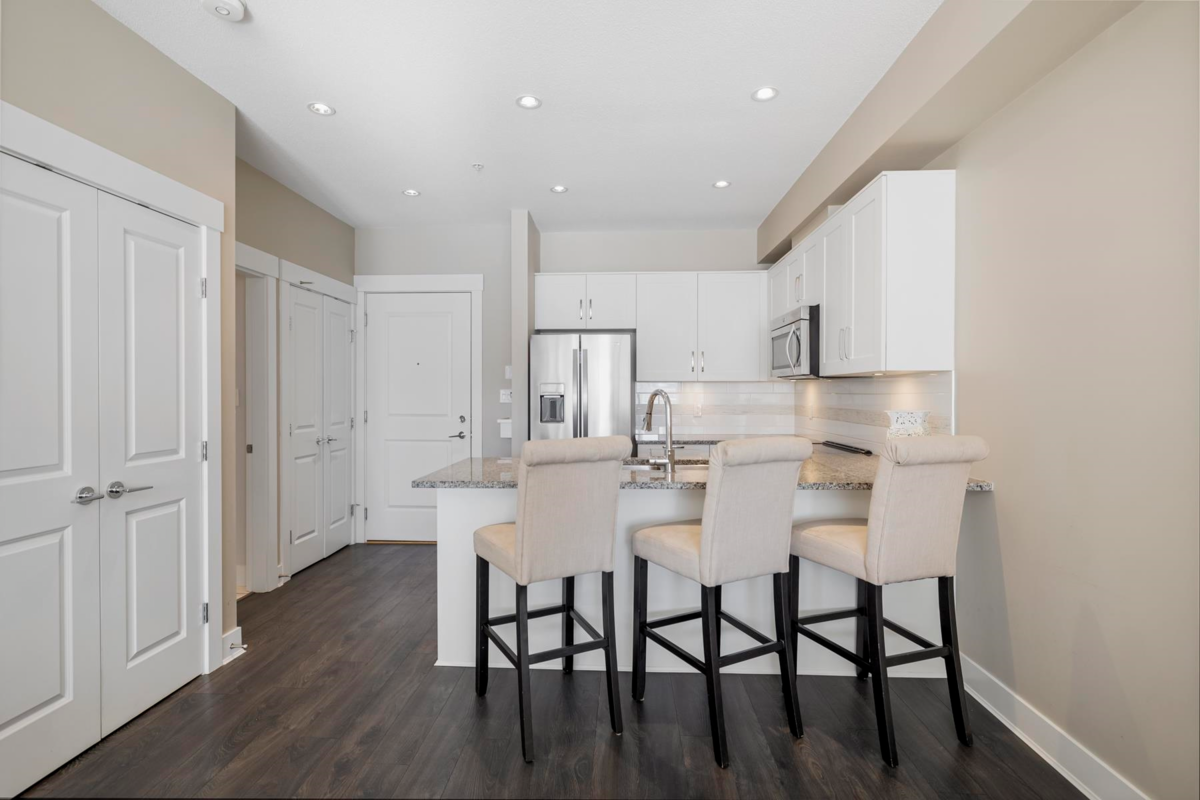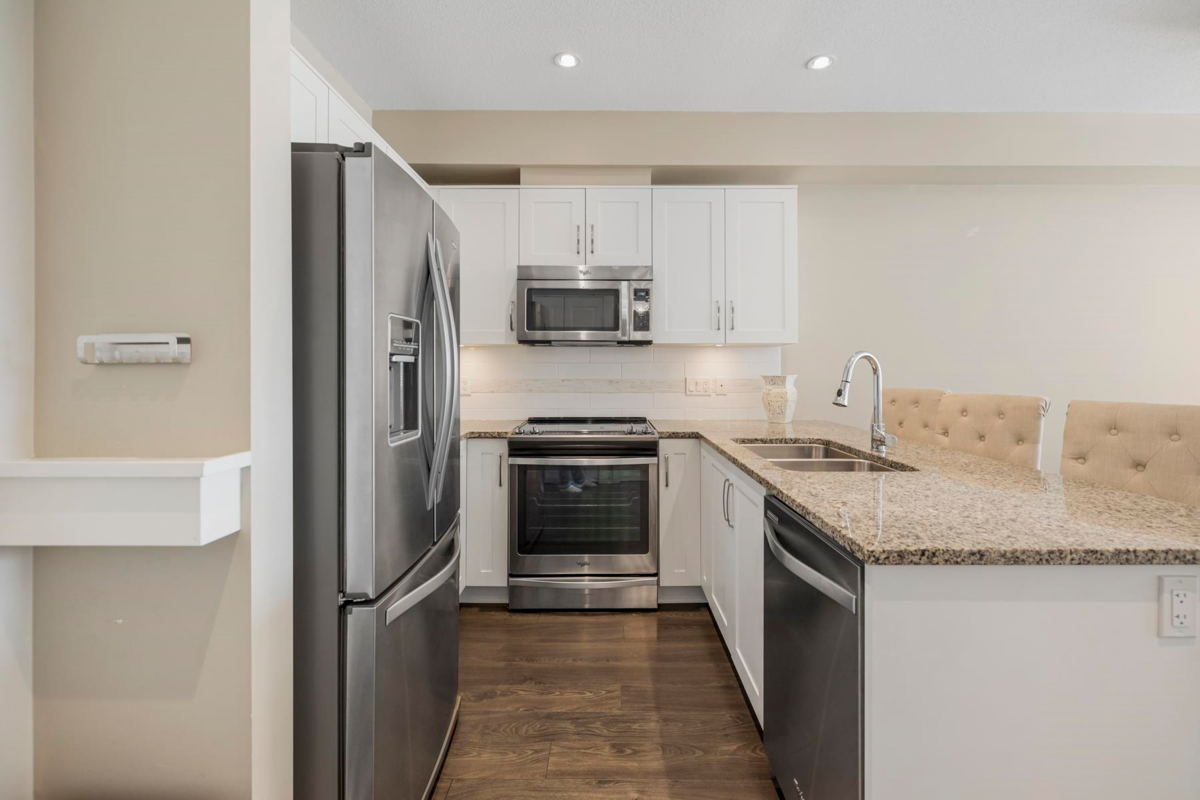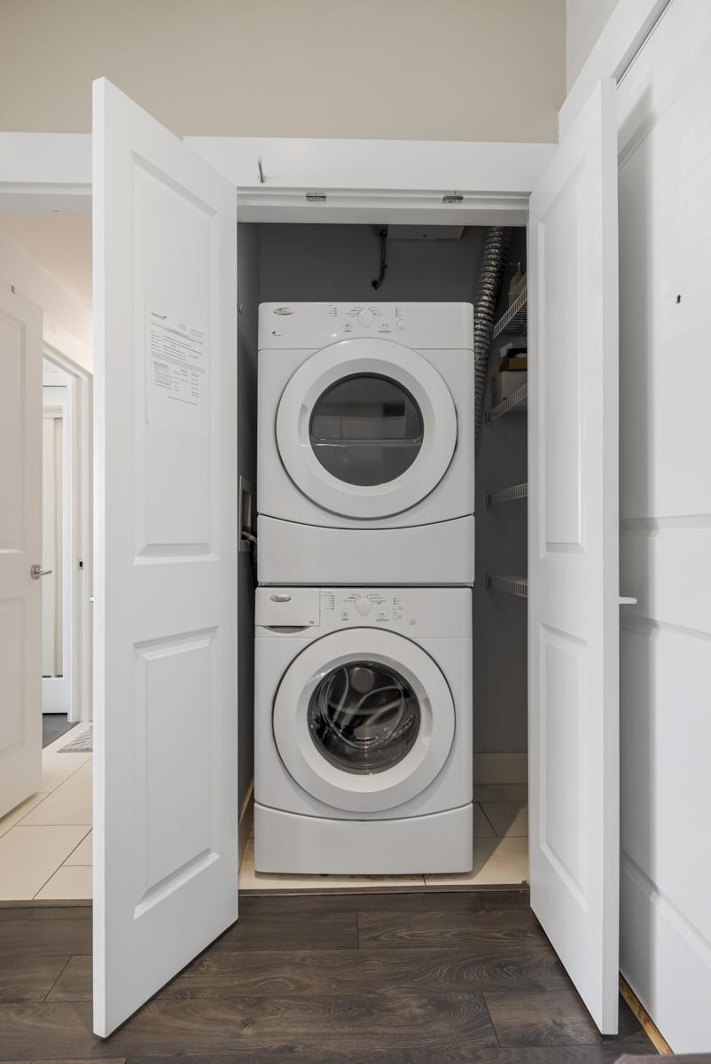 The Kensington is located in a Prime Location in Willoughby Town Centre with shopping, restaurants, fitness studios and transit service right outside your front door! A fabulous Village atmosphere. Unit 222 is a bright & sunny 1 bdrm 1 bath located on the quieter side of the building and boasting a massive 250 sq ft patio deck perfect for entertaining or relaxing with your morning coffee. An open Floor Plan with 9 ft ceilings and bright white kitchen offering s/s appliances, quartz countertops and lots of natural light. Spacious Primary bedroom with walk-through closets & 4 piece bath includes modern fixtures. Minutes to Hwy 1 & Pet friendly. Perfect for first time buyers, downsizing or investors. Open House Sat Feb 22 2:00-4:00