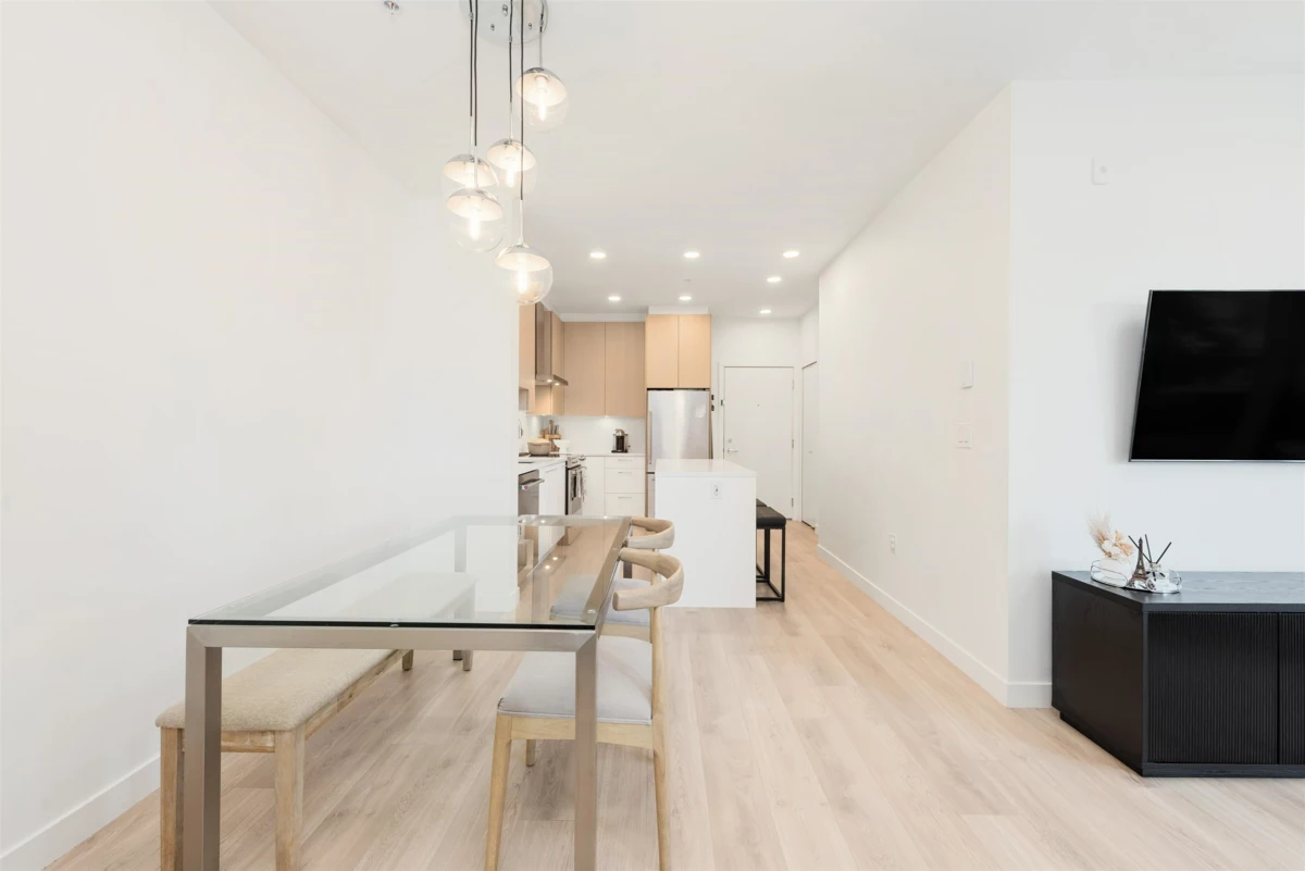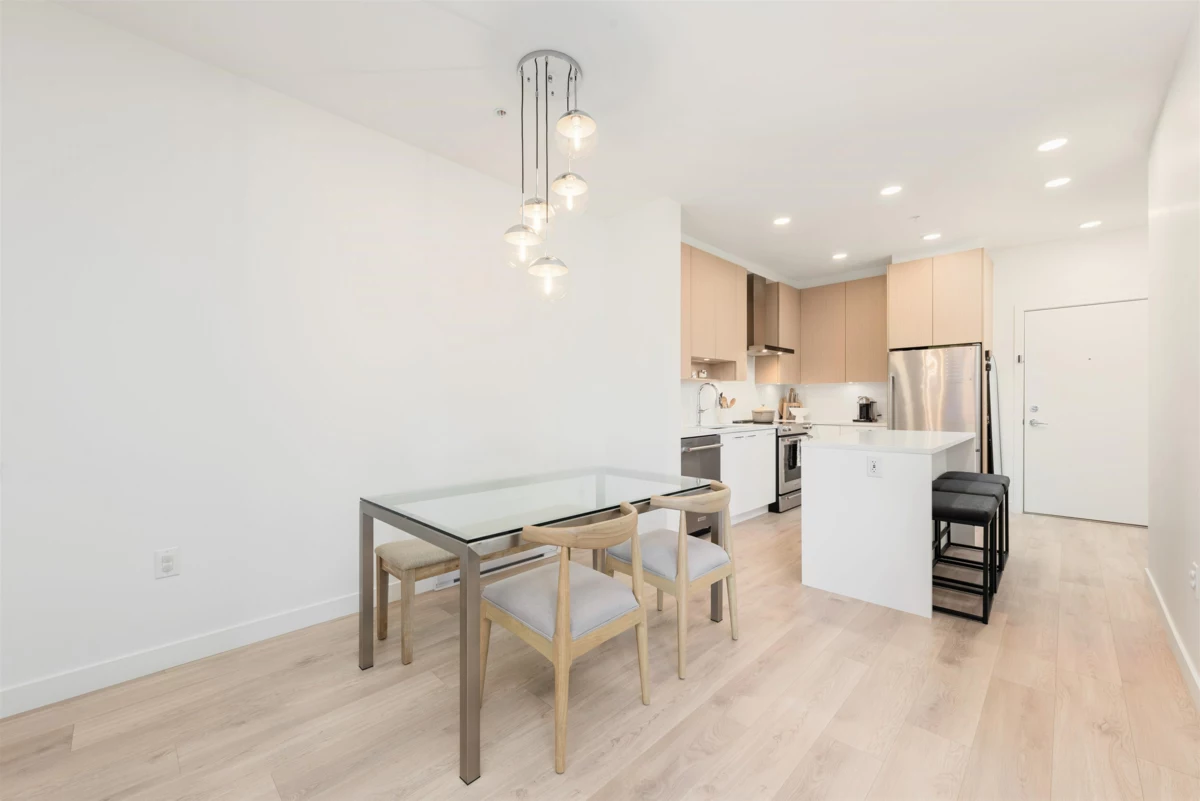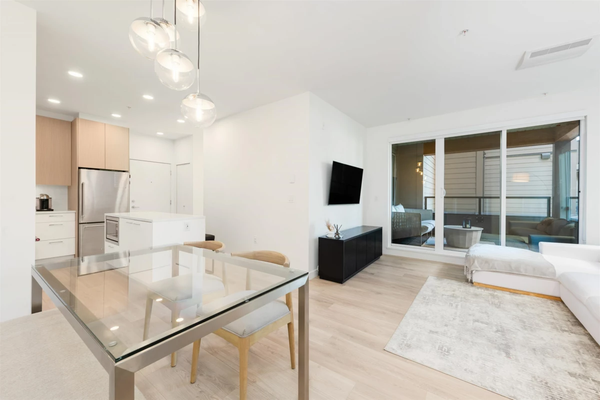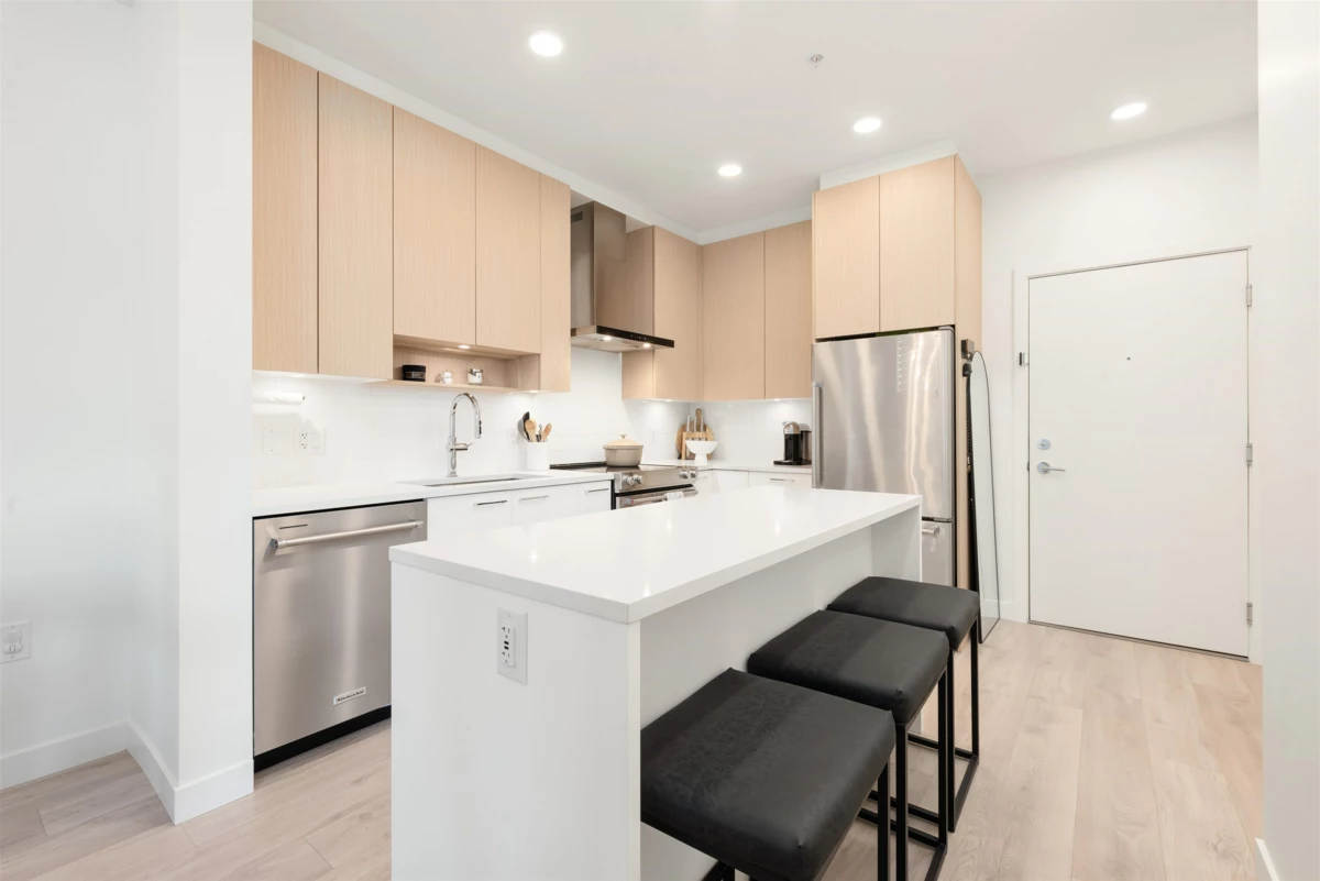 Welcome to Cedar Creek by Ledingham McAllister, enjoy modern living in a fast-growing community. One of the best out 2 bed 2 baths in the building. This court yard facing corner unit offers overheight ceilings complementing its open layout. With a gourmet kitchen equipped with full-sized stainless steel appliances. updated laminate flooring, and sleek modern cabinetry. Step out to your oversized covered balcony—ideal for hosting or winding down. The spacious primary bedroom has a walk-in closet and ensuite. The second bedroom is perfect for guests, work-from-home, or future family needs. Both bedrooms are generously sized. The home includes 1 parking + 1 storage locker. Amenities include gym, guest suite, car wash station, and more. Pet and rental friendly &Walking distance to SkyTrain