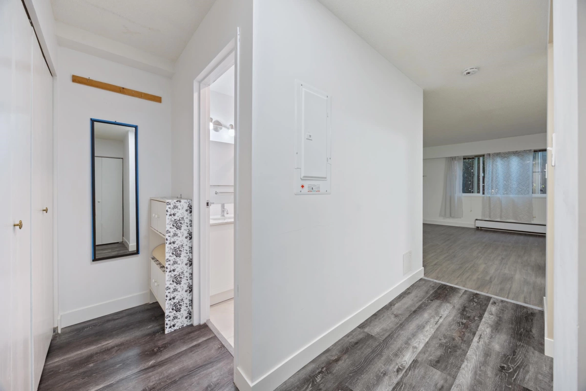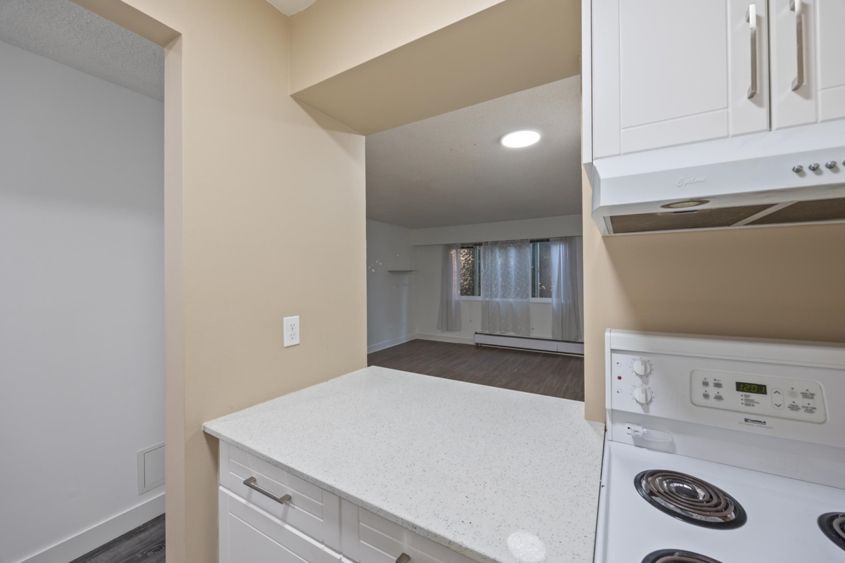 Welcome to SunGod Villa in Kennedy Heights. Bright bachelor suite with a functional open layout and abundant natural light throughout. Extensively renovated in 2023–2024 with approx. $60,000 in upgrades, including new flooring, drywall with complete asbestos removal, new double-pane window, fully renovated bathroom, and an updated kitchen with new cabinetry, backsplash, sink, hood fan, and dishwasher (strata approved). Added built-in storage, new lighting, new electrical panel with city permit, fresh paint, new switches and outlets, and new window coverings. Quiet, well-maintained complex with open parking. Steps to transit, shops, parks, and everyday amenities. Ideal for first-time buyers or investors. Open House Sat/Sun Jan 24th-25th, 1-4 PM.
