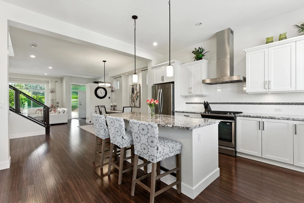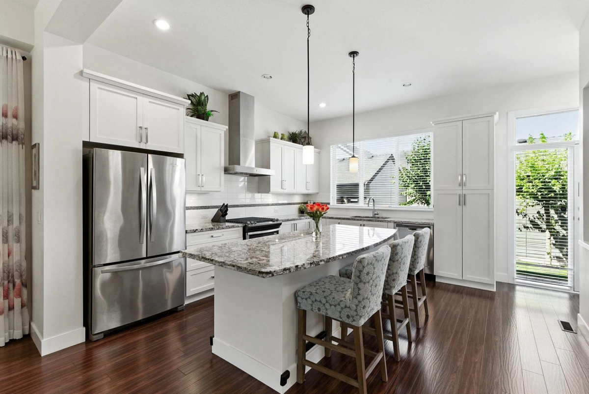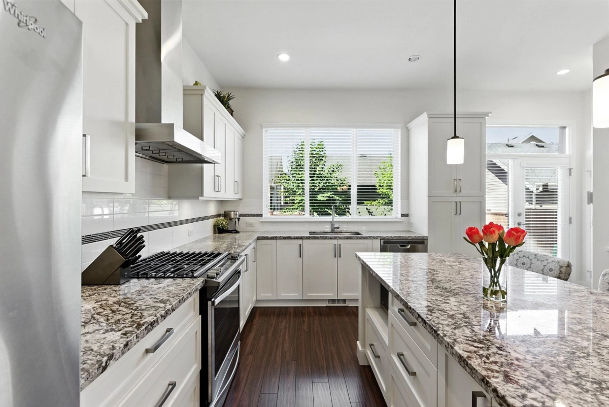 Exceptionally maintained home in the Edgewood Elementary catchment, offering over 2,700 sq.ft. on a 3,843 sq.ft. lot. The main floor features open concept living & dining with 10 ft ceilings, gas fireplace & a light-filled kitchen with granite countertops, stainless appliances, gas range, & central island, perfect for everyday meals or casual entertaining. Upstairs, the vaulted primary suite offers a space to unwind, the ensuite is highlighted by a generous walk in shower plus two additional bedrooms & laundry. Finished lower level with 2 bedroom suite & private entry, offering potential $1,800+ monthly income. EV-ready double garage, extra parking, A/C, artificial turf front & backyard. South Surrey family living at its finest, walking distance to Edgewood Park & Grandview Aquatic Centre.