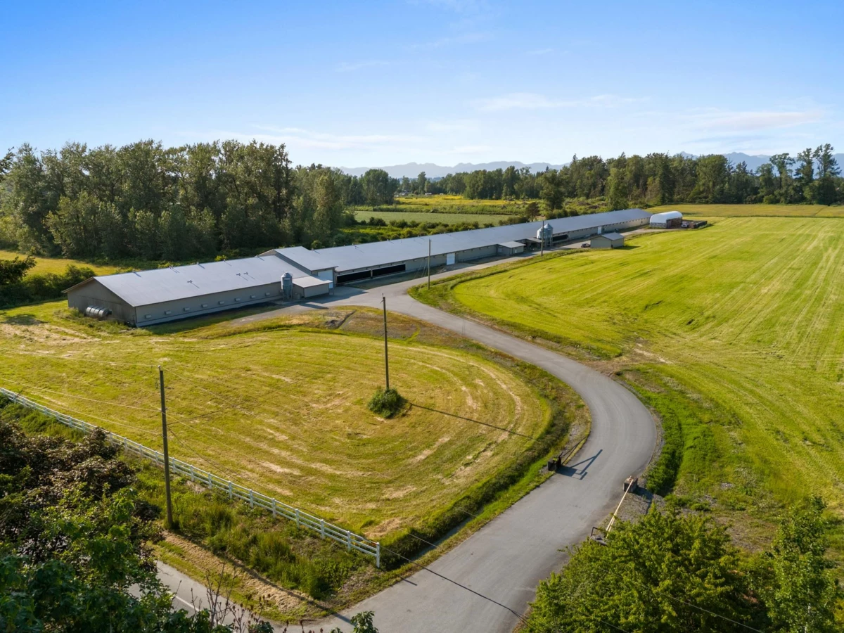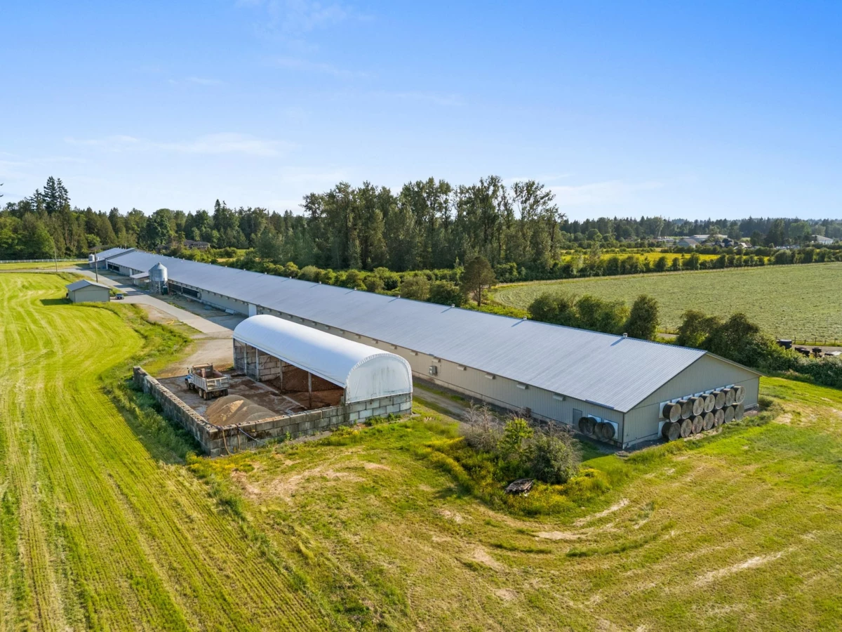 Fully operating Turkey Farm ~ Price includes Quota, outbuildings, barns & some equipment! Step into the BC Turkey Industry or expand your operation w/ this state-of-the-art farm in an incredible location. A flat, rectangular 24.7-acre property with double frontage on 40th Ave & 228 Street. Municipal water along the East property line for future barns or homes. Built in 2013, the 3-stage, well-maintained barn is 72' x 1014' and features cool pad tunnel ventilation, Maximus computers, choretime feeding, sentinel scales & more. Outbuildings include a poultry manure storage barn and a 24'x44' storage building. The barn runs on City water, w/ a newly drilled well and hydrants for your field. Fields are currently hayed but could be tilled & planted for increased revenue. Call now!