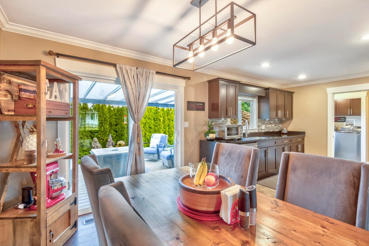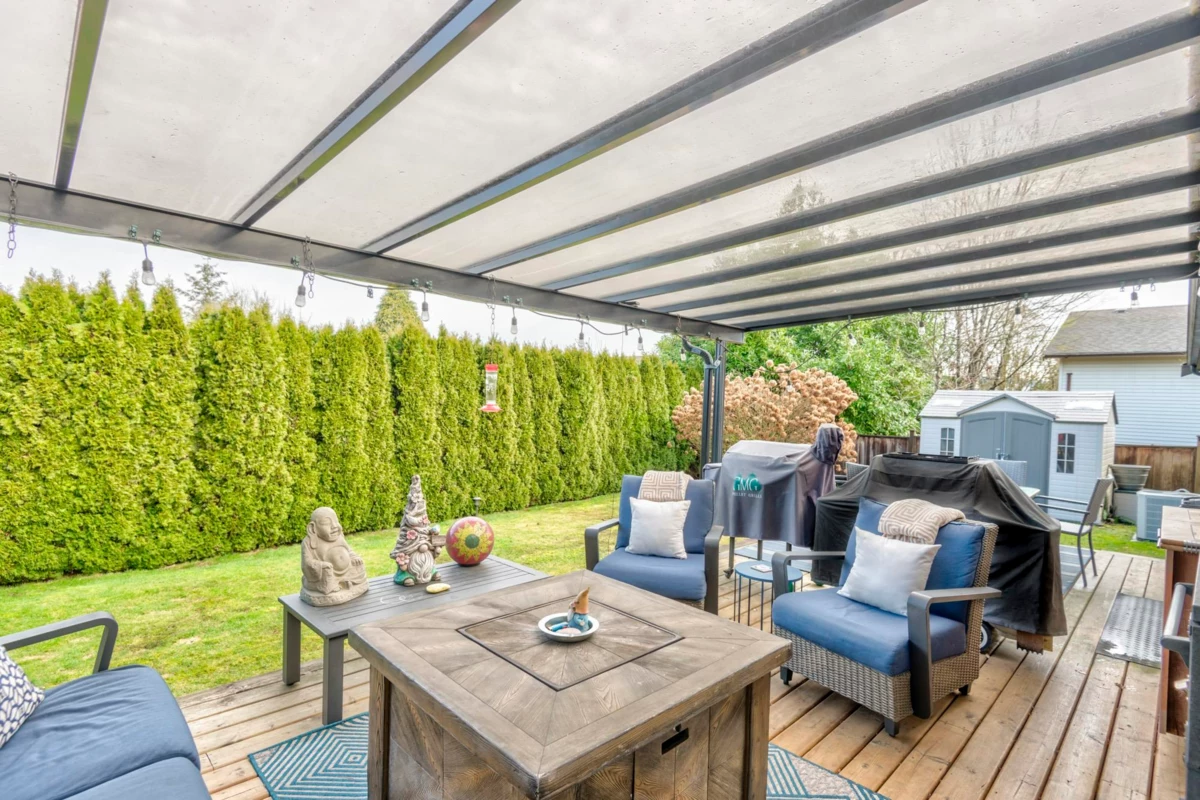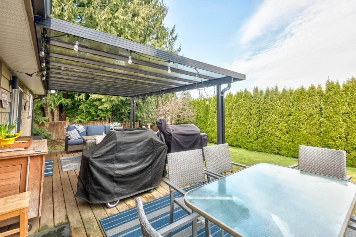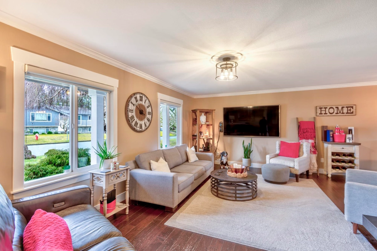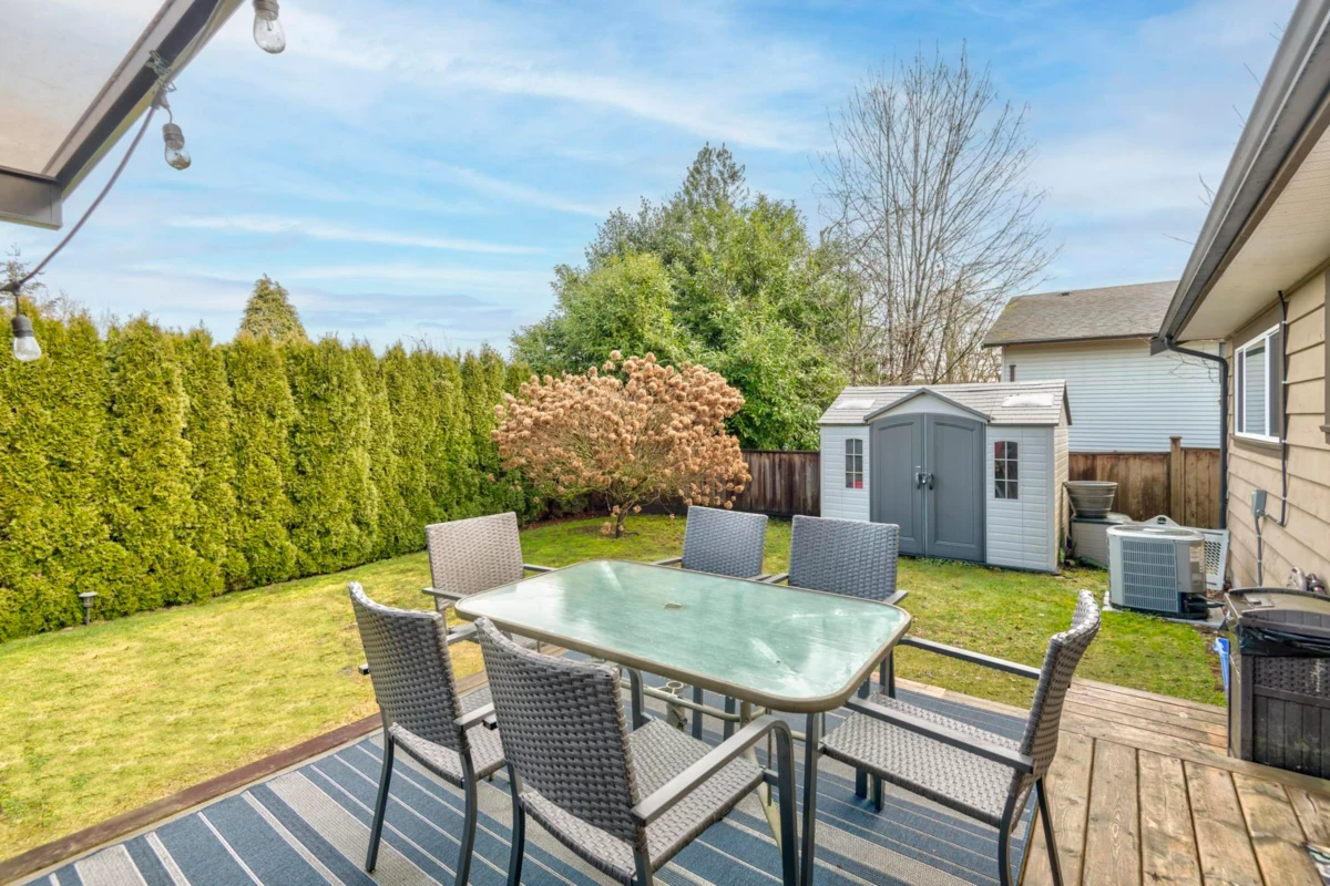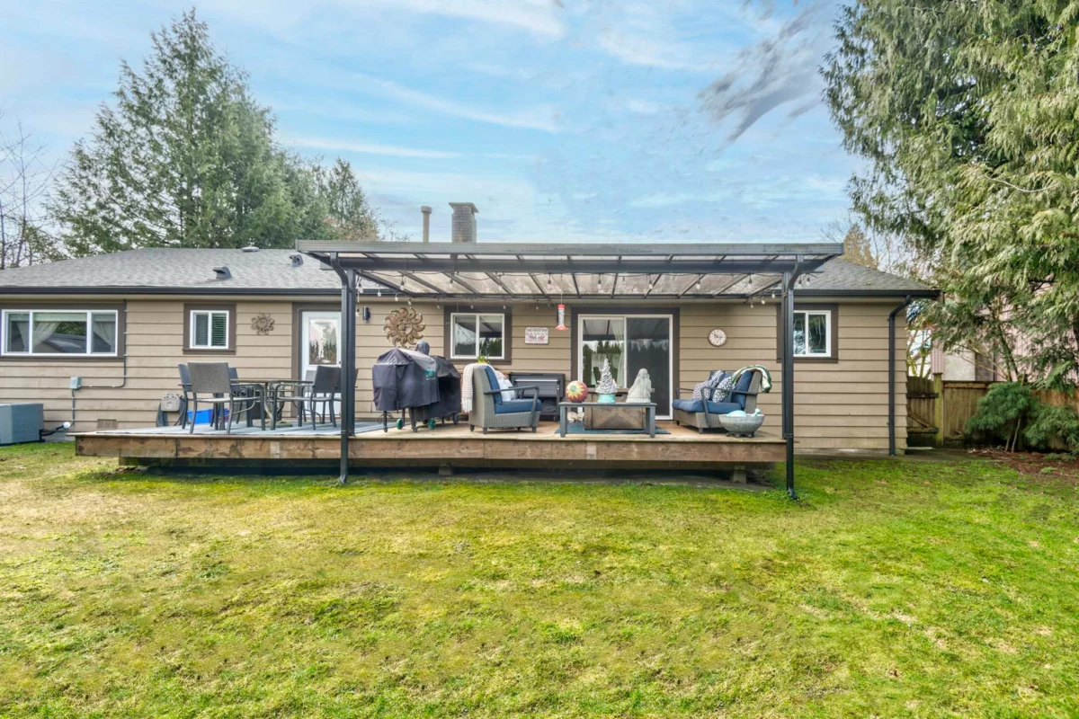 This Immaculate 1 level Rancher includes: Extensive, quality finishing throughout. 3 bedrooms can accommodate King-sized beds. Newer furnace, air conditioning, appliances, and updated roof/windows. Modern hardwood floors, and a gas fireplace. Shaker style cabinets, stainless steel appliances, tile floors, granite countertops and a pull-out pantry. An updated 5-piece main bathroom and a primary suite with a walk-in closet and a 3-piece ensuite. Beautifully landscaped, private, fully fenced yard with a view of Golden Ears Mountain. A 240 sq.ft. covered patio for year-round use. RV parking and an electric car charger. Convenient location minutes from downtown, shopping, recreation, parks, and the Abernathy connector. Perfect for the downsizer or starter. Just move in! No sign.