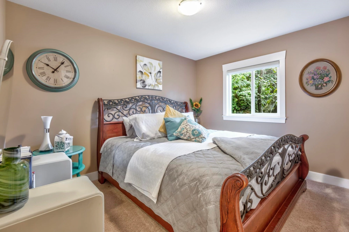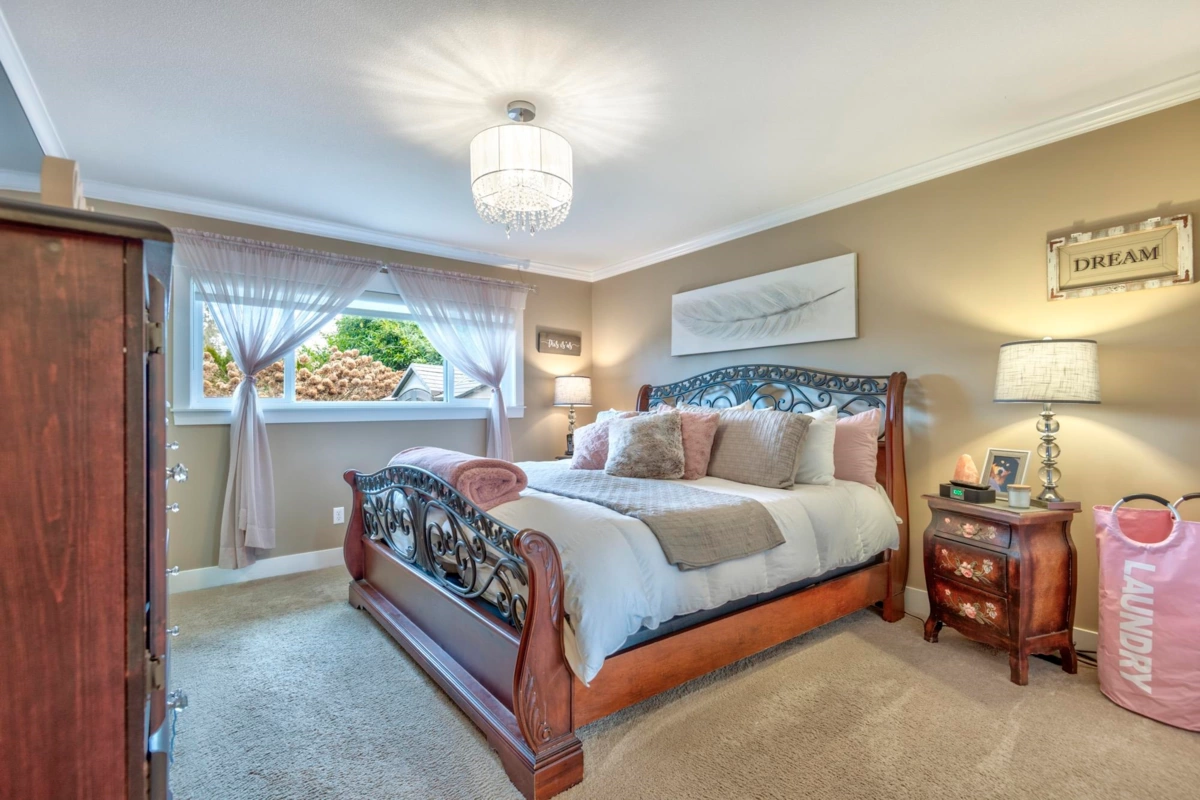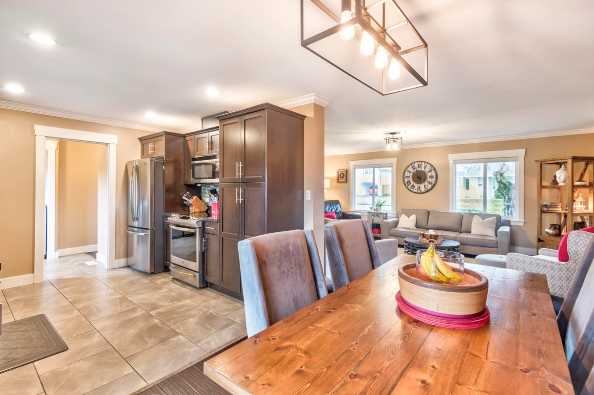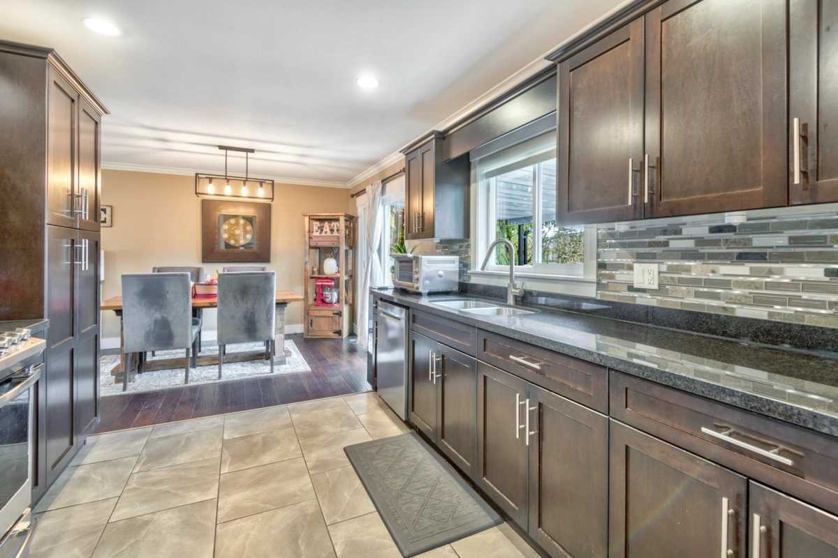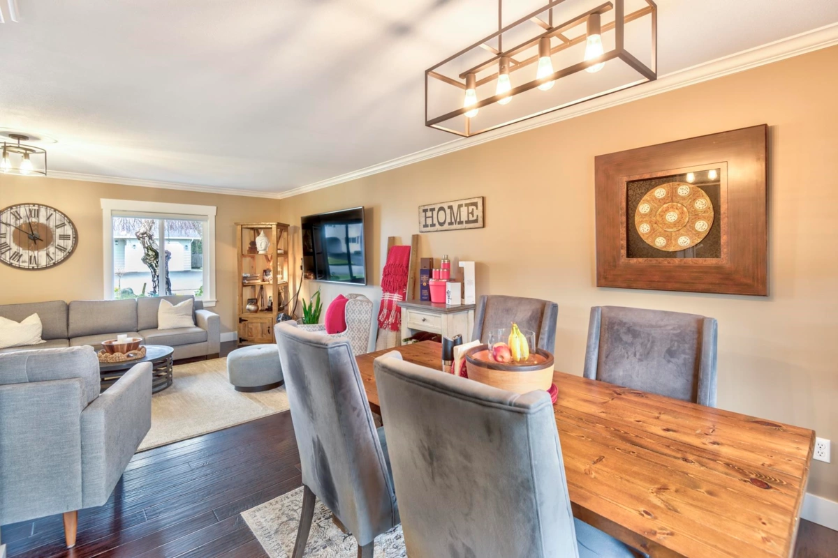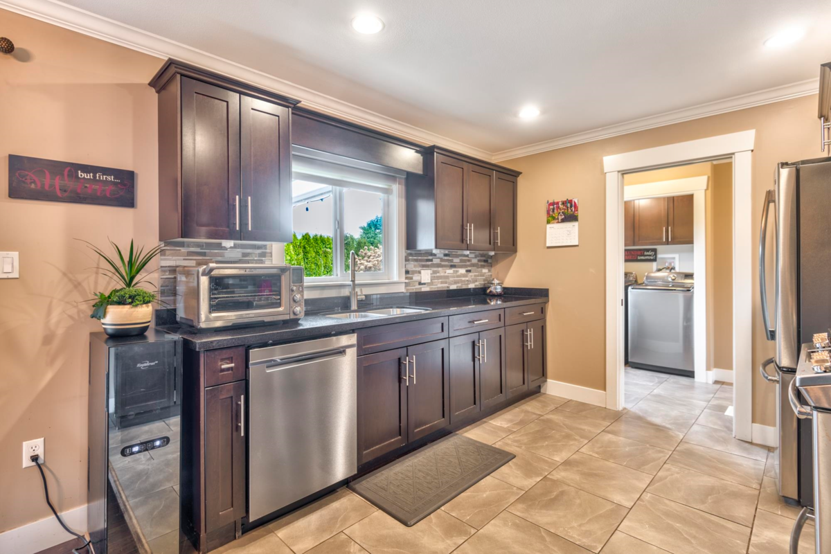 This Immaculate 1 level Rancher includes: Extensive, quality finishing throughout. 3 bedrooms can accommodate King-sized beds. Newer furnace, air conditioning, appliances, and updated roof/windows. Modern hardwood floors, and a gas fireplace. Shaker style cabinets, stainless steel appliances, tile floors, granite countertops and a pull-out pantry. An updated 5-piece main bathroom and a primary suite with a walk-in closet and a 3-piece ensuite. Beautifully landscaped, private, fully fenced yard with a view of Golden Ears Mountain. A 240 sq.ft. covered patio for year-round use. RV parking and an electric car charger. Convenient location minutes from downtown, shopping, recreation, parks, and the Abernathy connector. Perfect for the downsizer or starter. Just move in! No sign.